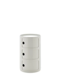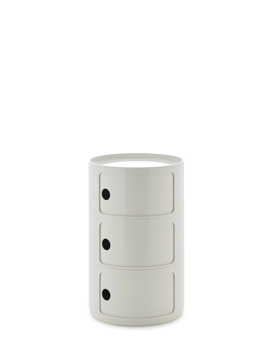 The 42 cm round version of Anna Castelli Ferrieri’s I Componibili now comes in an all-new look thanks to a new industrial print that enhances both quality and appearance. There are more colours to choose from too, with the addition of nuances already available for the 32 cm size complemented by original new shades that blend contemporary taste with elegant references to the past. Available in configurations of 2 or 3 indivisible elements, this version of I Componibili is the latest technical evolution of a classic from the Kartell catalogue. Available in Bordeaux, Dove Grey, Orange, Petroleum, Green and White.