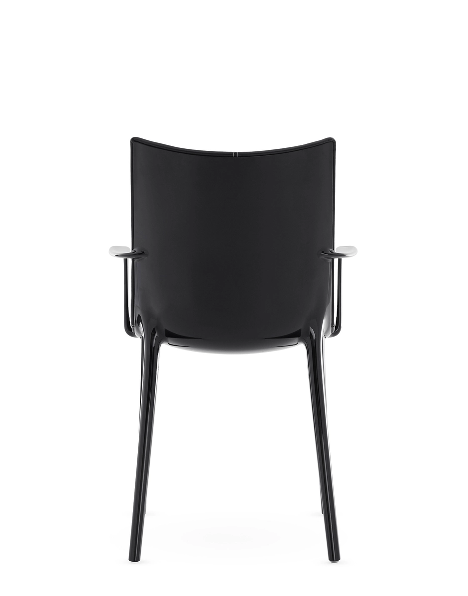 Philippe Starck elevates us to new heights with the H.H.H. - HER HIGHEST HIGHNESS chair. With unparalleled elegance and graphic impact, H.H.H. defines the very essence of the human interacting with it, compelling one to take a stance. It transcends the mere notion of sitting, transforming every moment spent upon it into one of true majesty. The frame is crafted from recycled material, and the seat is available in various finishes: recycled leather with green tanning treatment, in black and tan colours, eco-friendly texture sourced partly from recycled material and partly from renewable sources in black and tobacco colours, and in super glossy finish in white, black, burgundy, rust, mustard, blue and green.