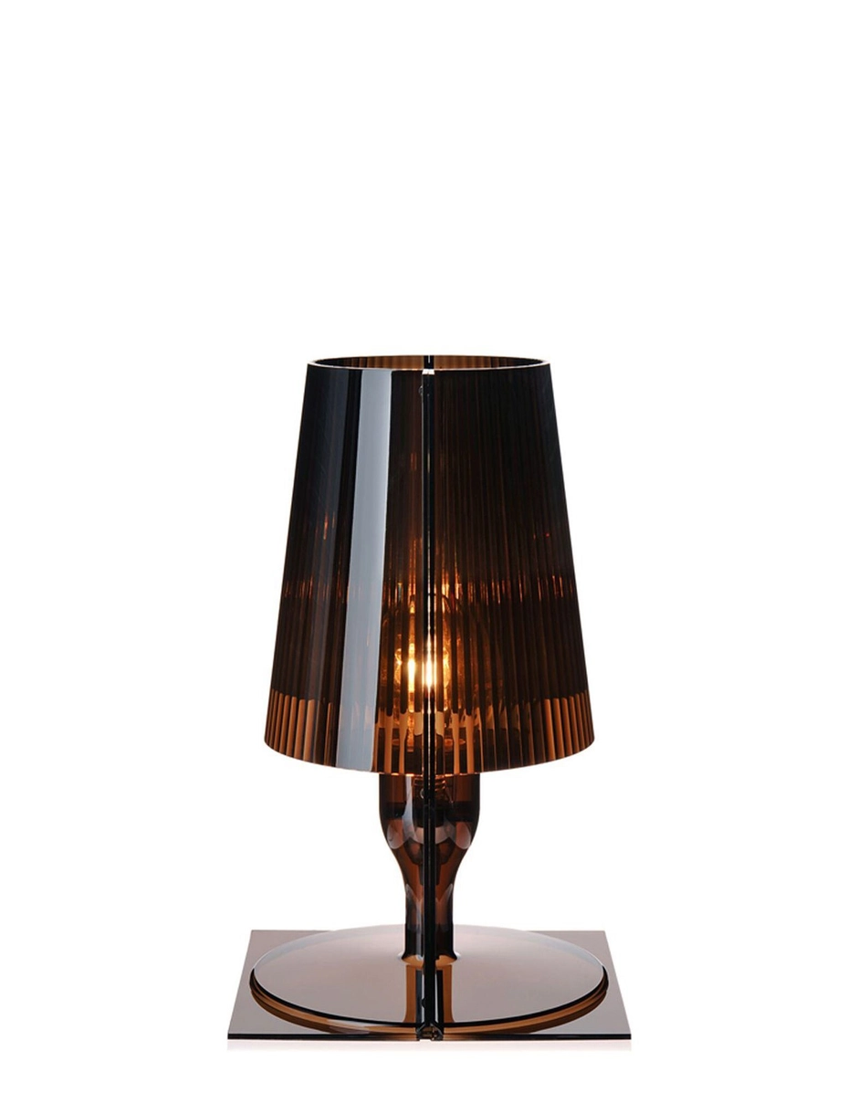 The classic icon of the bedside lamp is revisited by Kartell's technology to become an industrial product in a variety of colour shades. The shape of Take is the result of the joining of two specular parts: two flat, rectangular sheets which, from being two-dimensional at the centre, take on the shape and volume of a "semi-lamp". The internal pleating of the diffuser embellishes the object, creating, when lit, a play of reflections.
