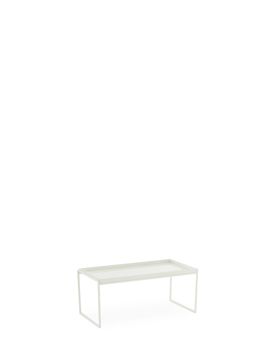 TRAYS is a versatile shelving system for home or office use. The concept is that of a set of tables, trolleys and shelves with surfaces inspired by traditional Japanese lacquered trays in both design and finish. The TRAYS collection is now bigger than ever, with new heights and shapes covering a wider range of modern needs and functionalities. TRAYS also boasts a new colour palette, with metal frames now in tone on tone shades.