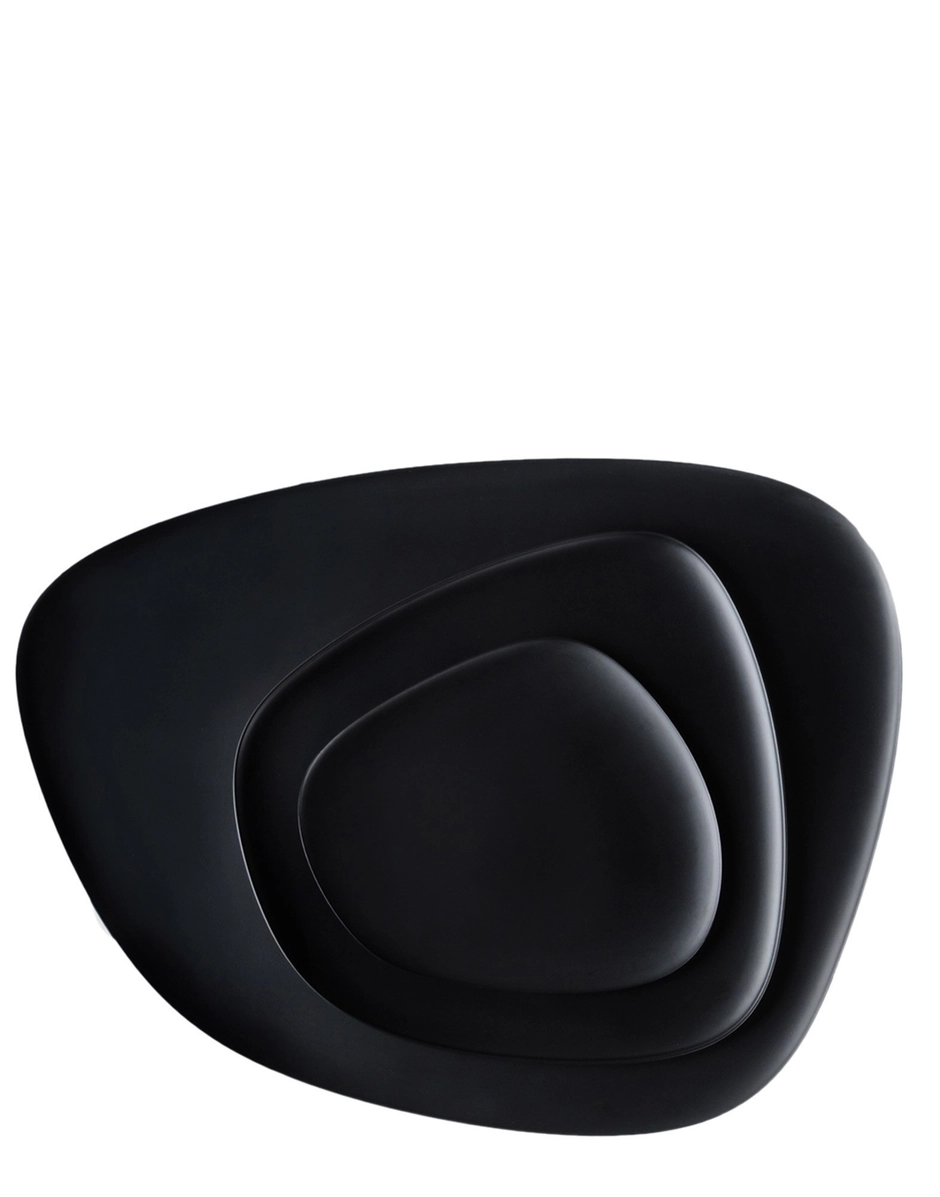 The set of 3 different sized "Namaste" plates/trays features an organic and asymmetric design that calls to mind the idea of flat stones and an all-natural colour scheme. The plates can be matched to create mellow tone-on-tone nuances or more bold contrasts.