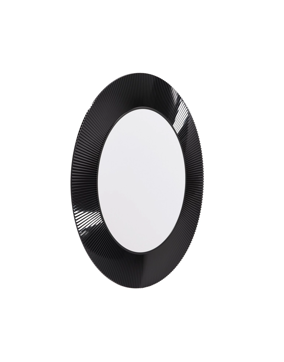 Round mirror with a transparent or coloured frame, with a unique pleated effect.