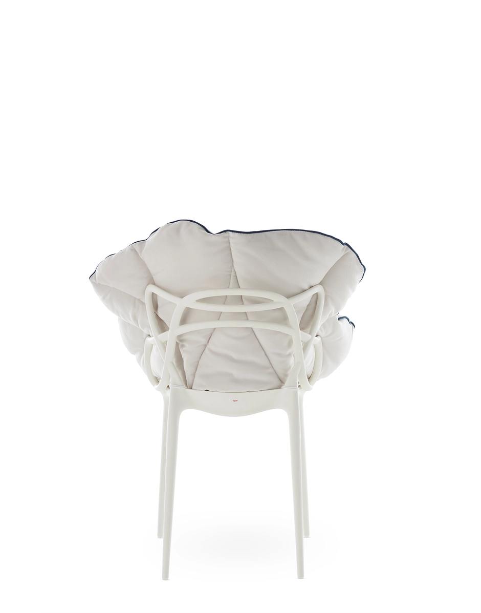 Die vielseitige und bequeme Kollektion „Alice’s Flowers“ ist in fünf Farbvarianten erhältlich: Gelb, Blau, Rosa, Rot, Weiß und zwei Streifen- und Punktemuster. Die Kissen sind so gestaltet, dass sie eine Auswahl an Meisterwerken in gepolsterte Sessel verwandeln: Masters, Louis Ghost, A.I., Venice, Hiray, Generic A und C.