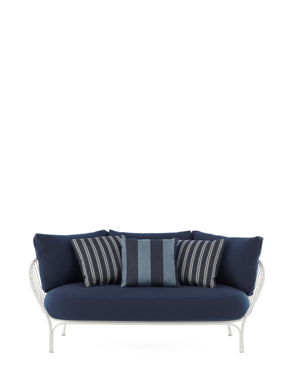 The HiRay family by Ludovica Serafini + Roberto Palomba expands with a new project: a sofa with more generous proportions, complemented by thicker cushions that enhance the seating experience, making it even softer and more comfortable. The new version of the sofa is designed to offer a more lounge-like and cosy experience, meticulously crafted to ensure optimal comfort, suitable for both residential and contract settings. The textile research further enhances the product, making it extremely versatile and suitable for outdoor use. The sofa is available in white, black, rust, and green. The complete collection includes a loveseat, armchair, side table, chair, bistro table, high table, and stool.