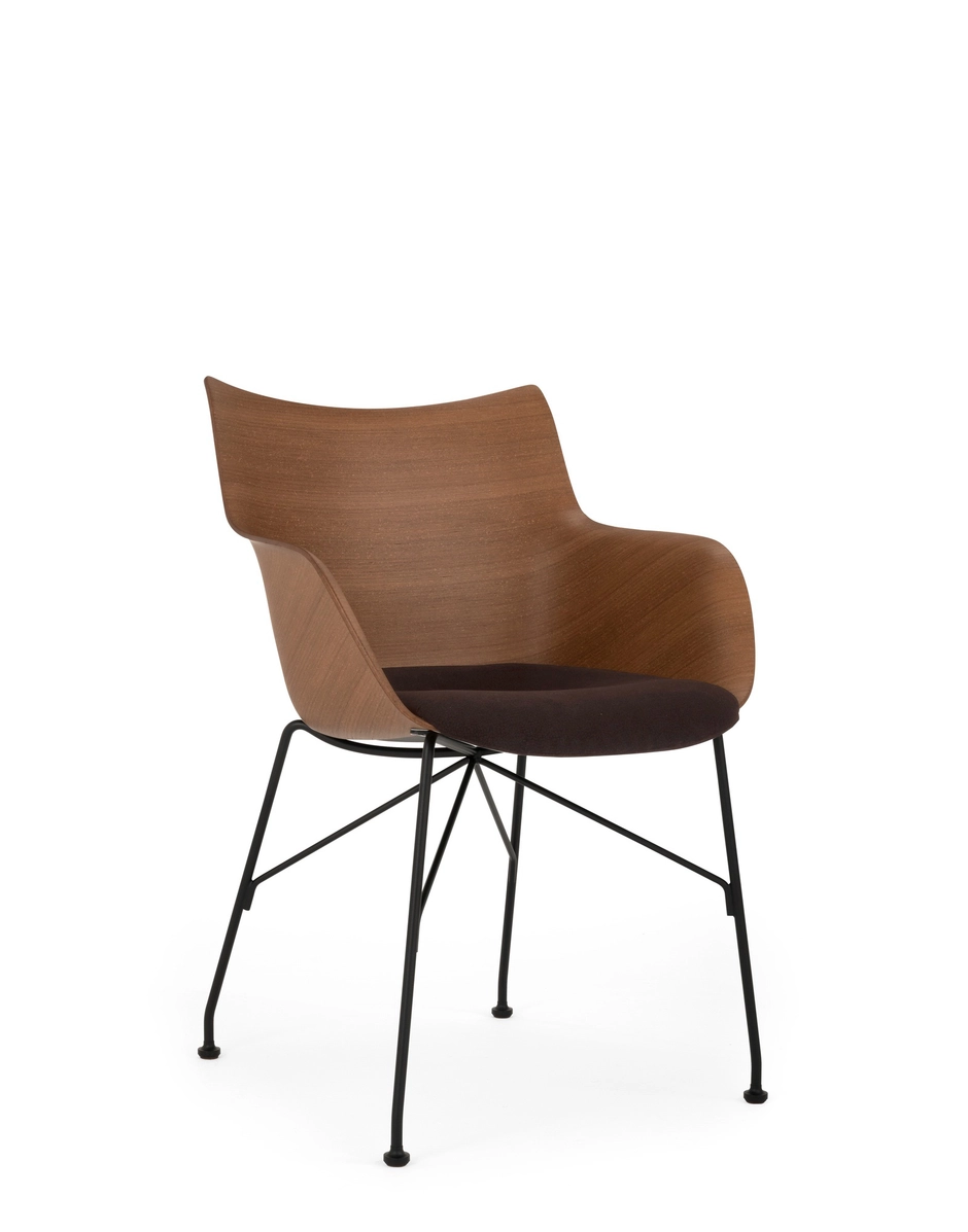 These brand-new rotating armchairs on wheels are the latest addition to the armchair collection. Q/wood is characterized by a woodworking, combining timeless elegance with contemporary forms, and is available in three colour variants: light wood with a white seat and chrome structure, dark wood with a black seat and chrome structure or dark wood with a black seat and black structure