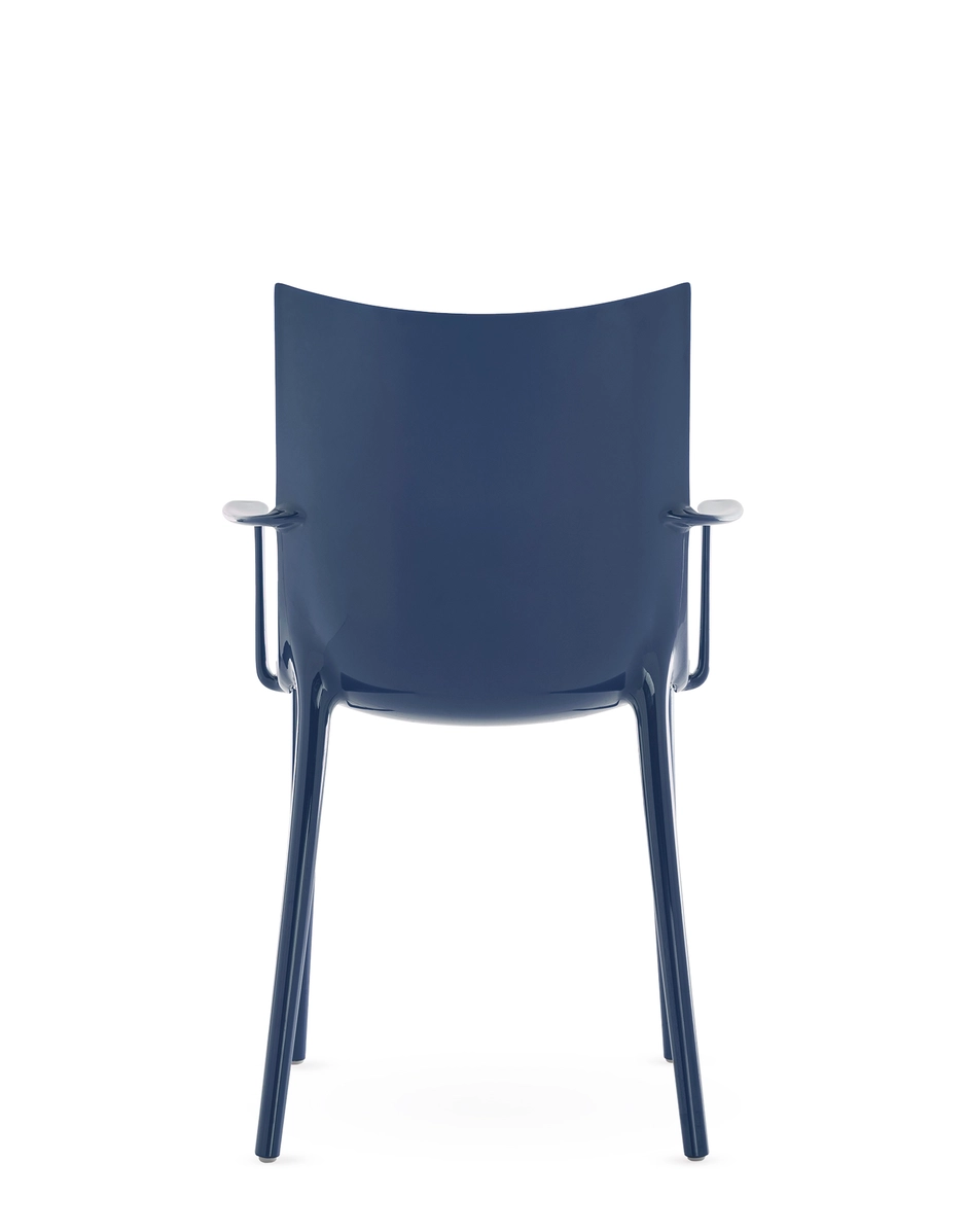 Philippe Starck elevates us to new heights with the H.H.H. - HER HIGHEST HIGHNESS chair. With unparalleled elegance and graphic impact, H.H.H. defines the very essence of the human interacting with it, compelling one to take a stance. It transcends the mere notion of sitting, transforming every moment spent upon it into one of true majesty. The frame is crafted from recycled material, and the seat is available in various finishes: recycled leather with green tanning treatment, in black and tan colours, eco-friendly texture sourced partly from recycled material and partly from renewable sources in black and tobacco colours, and in super glossy finish in white, black, burgundy, rust, mustard, blue and green. But H.H. rises above the simple practical functions of a chair, becoming an emblem of style that enchants and inspires anyone who approaches it thanks to the Kartell x Liberty edition, upholstered in six Liberty fabrics featuring lively floral prints. Faithful to its pioneering role in the search for new and different forms of technological innovation, Kartell has also decided to take a further step in this direction, experimenting with a new high-tech industrial printing process called “graphic impression”. This technique will be used to produce 4 floral and geometric patterns in different colour versions.