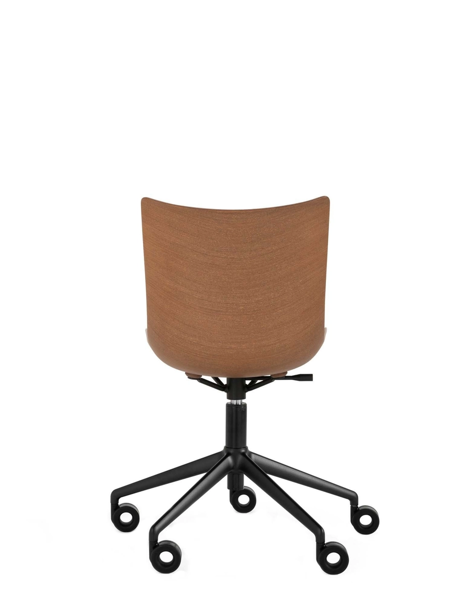 Ces tout nouveaux fauteuils rotatifs sur les roues sont le dernier ajout au fauteuil collection. P/wood se caractérise par un travail du bois, alliant élégance intemporelle aux formes contemporaines, et est disponible en trois variantes de couleur : bois clair avec un blanc assise et structure chromée, bois foncé avec un assise noire et structure chromée ou bois foncé avec une assise noire et une structure noire.