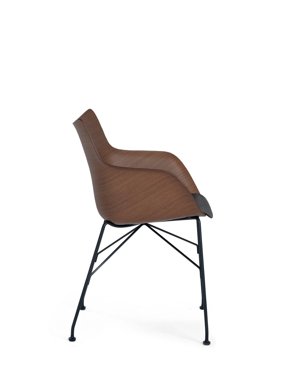 Q/Wood est le fauteuil de la collection Smart Wood dont les lignes enveloppantes créent des accoudoirs accueillants pour un confort d'assise maximal. Faisant appel à une technique spéciale brevetée, le bois est en fait moulé ce qui permet de cintrer au maximum le panneau pour créer une coque d’assise aux lignes sinueuses.