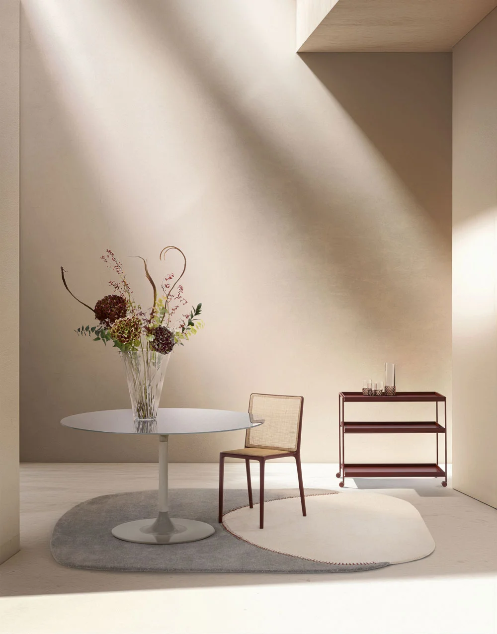 BELVEDERE ist das neue Kreativprojekt von Ludovica Serafini und Roberto Palomba, ein Stuhl, dessen Name an die zeitlose Eleganz des Schlosses Belvedere in Wien erinnert, Hüter österreichischer Kunst und Tradition. Dieses Projekt entstand aus der Begegnung zwischen dem raffinierten Erbe der Wiener Sitzmöbel und der Innovationskraft von Kartell, das hochmoderne Materialien und Lösungen erforscht. Wiener Stroh wird mit einer Struktur aus recyceltem Kunststoff kombiniert, was ihm Leichtigkeit und Modernität verleiht. Diese scheinbar einander fremden Materialien interagieren auf beispiellose Weise und erwecken ein originelles Stilmerkmal zum Leben. Das Ergebnis ist eine perfekte Balance zwischen Handwerkskunst und Technologie, Vergangenheit und Zukunft. BELVEDERE verkörpert eine schlichte und strenge Eleganz, die Epochen überdauert und sich als Symbol zeitgenössischer Raffinesse etabliert. Es ist keine einfache Hommage an die Tradition, sondern eine Neuinterpretation, die in die Zukunft blickt und einen neuen ästhetischen Code umreißt.