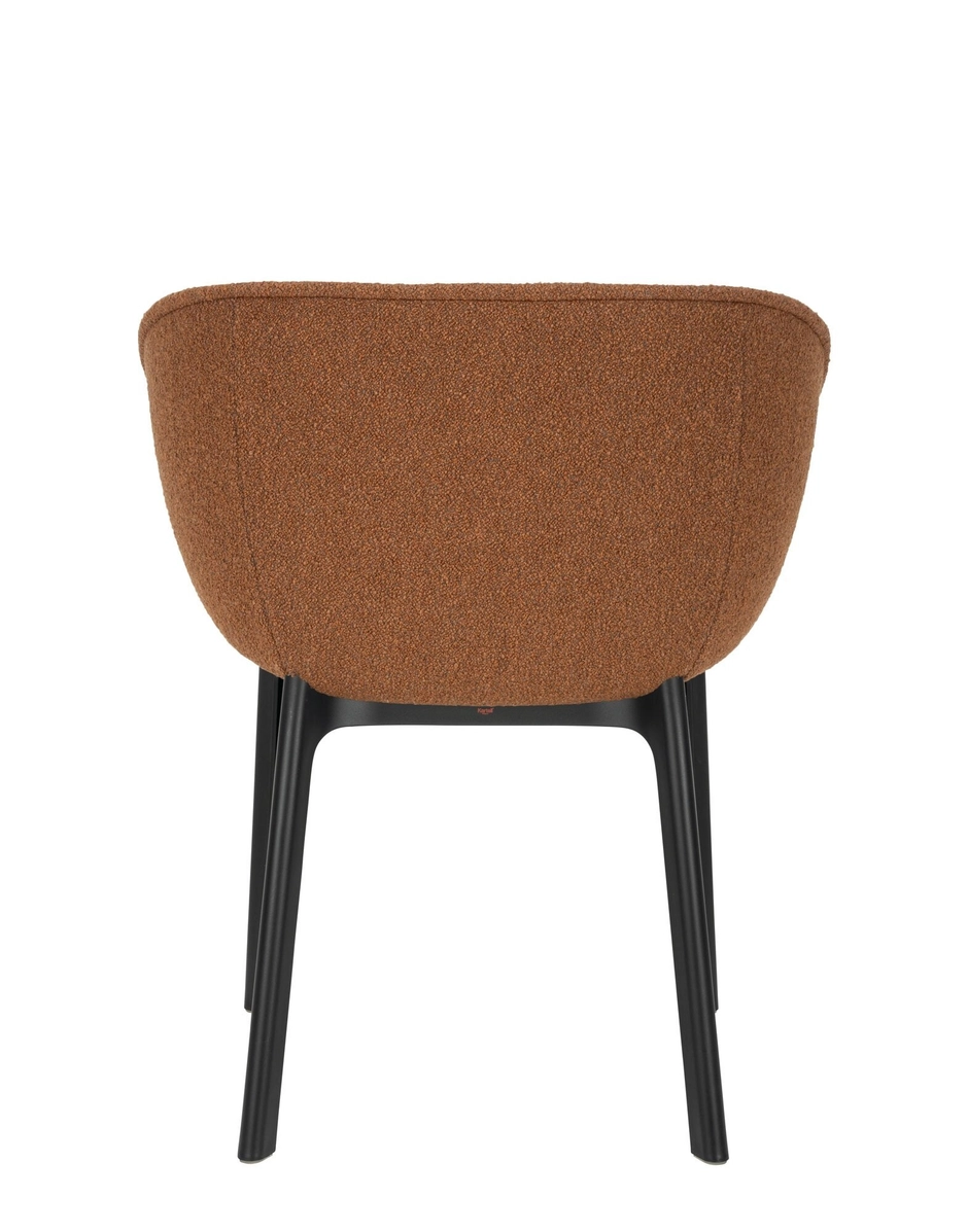 Die Beine aus recyceltem Kunststoff - für ein Produkt, das Eleganz und Umweltbewusstsein in sich vereint - sind in Schwarz gehalten, während für die Textilüberzüge Bouclé oder Contract Mélange Stoff ausgewählt werden kann.