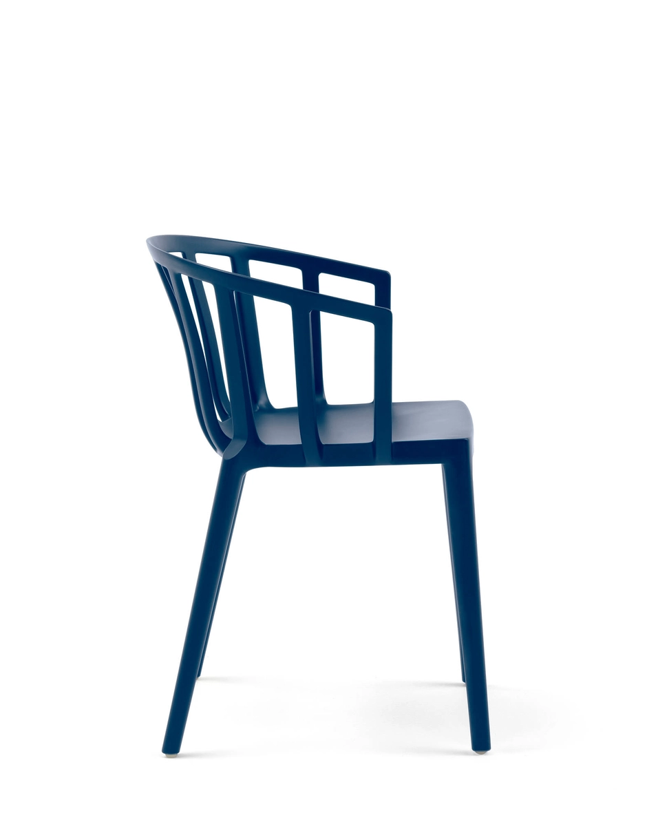 Eine Huldigung an die Stadt Venedig mit einem Stuhl, der sowohl als Sitzgelegenheit am Tisch als auch im Wohnzimmer verwendet werden kann und dank des Stils seiner Form, die mit einer neuen Interpretation der Stimmung der klassischen Stühle der historischen venezianischen Cafés hergestellt wird, klassische und bequeme Linien vereint. Venice ist sowohl für die Indoor- als auch die Outdoor-Verwendung geeignet.