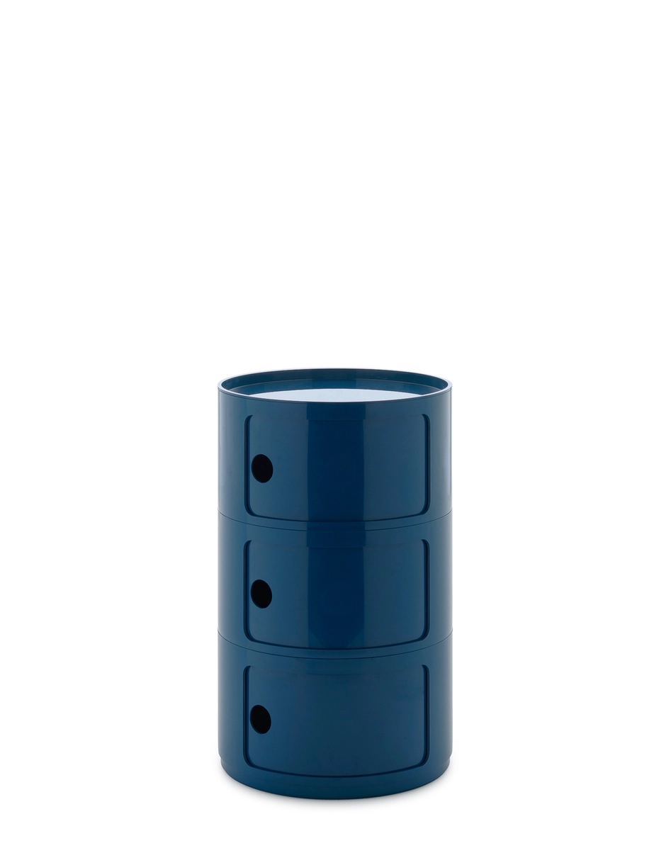 The 42 cm round version of Anna Castelli Ferrieri’s I Componibili now comes in an all-new look thanks to a new industrial print that enhances both quality and appearance. There are more colours to choose from too, with the addition of nuances already available for the 32 cm size complemented by original new shades that blend contemporary taste with elegant references to the past. Available in configurations of 2 or 3 indivisible elements, this version of I Componibili is the latest technical evolution of a classic from the Kartell catalogue. Available in Bordeaux, Dove Grey, Orange, Petroleum, Green and White.