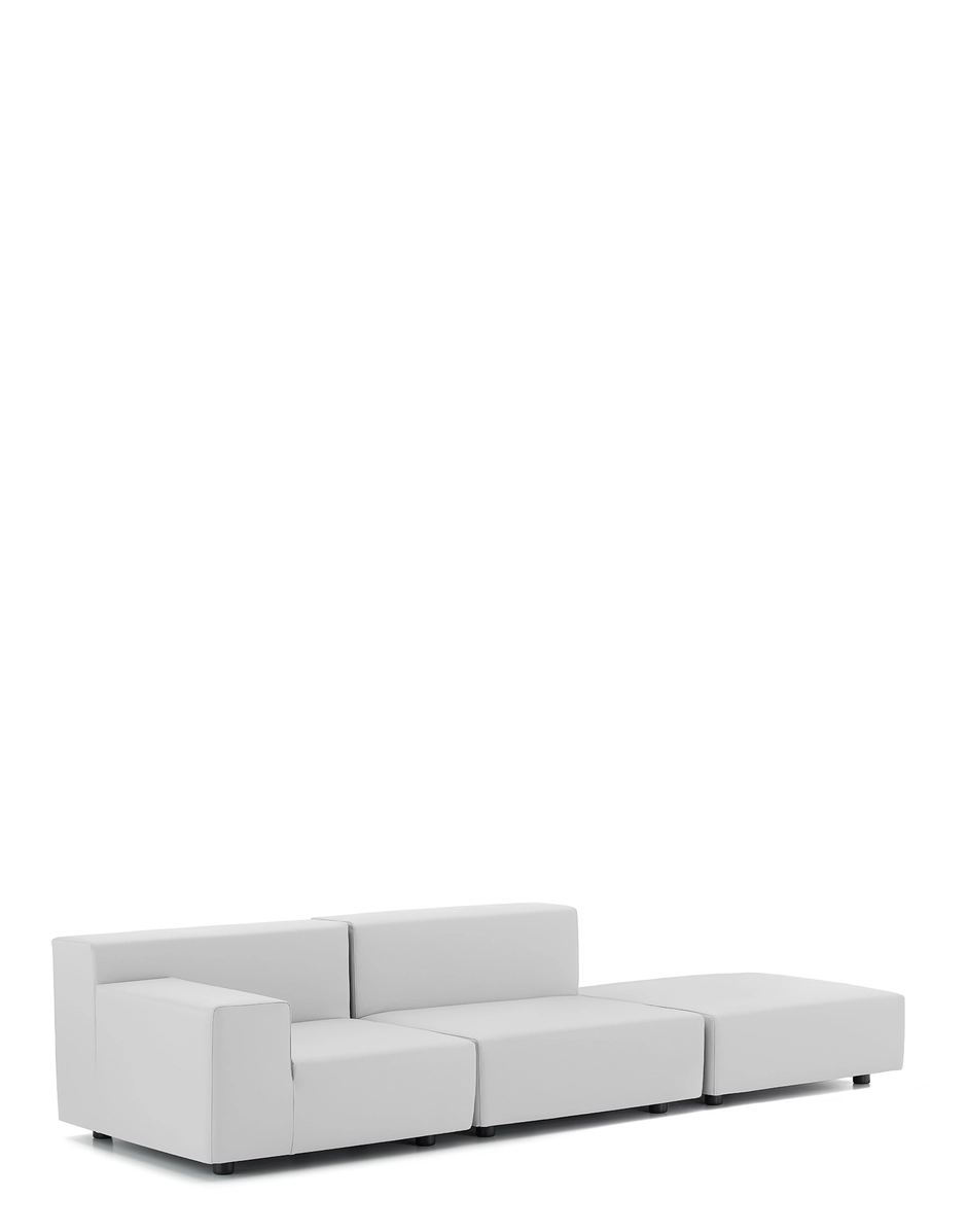 Plastic is the modular sofa with severe lines characterised by large cushions made of soft polyurethane upholstered in fabric. The Pop collection is completed by an armchair with the same features and by a pouf, which can be used individually or as part of an arrangement.