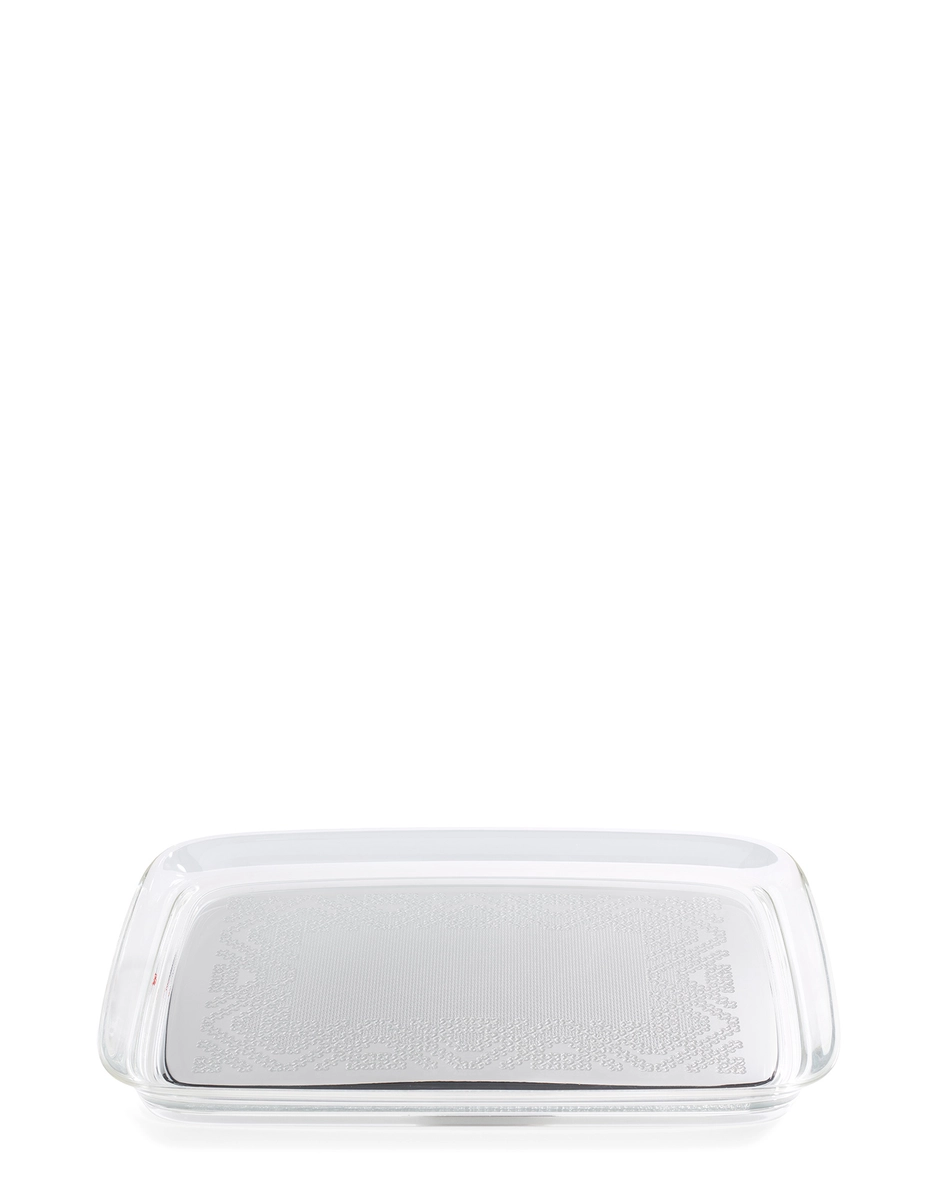 Precious embroidery, reminiscent of the past but becoming a discreet and familiar design object, like family tea time. TEATIME is Philippe Starck's new tray, which plays with references to crocheted openwork applied to the new high-tech sustainable material. Available in gold, bronze, chrome and pink.