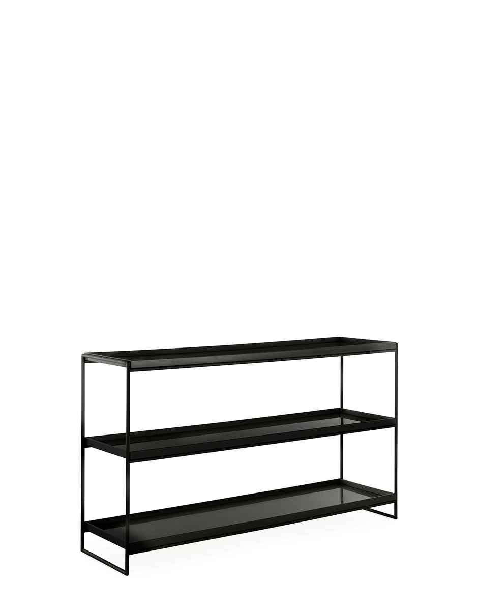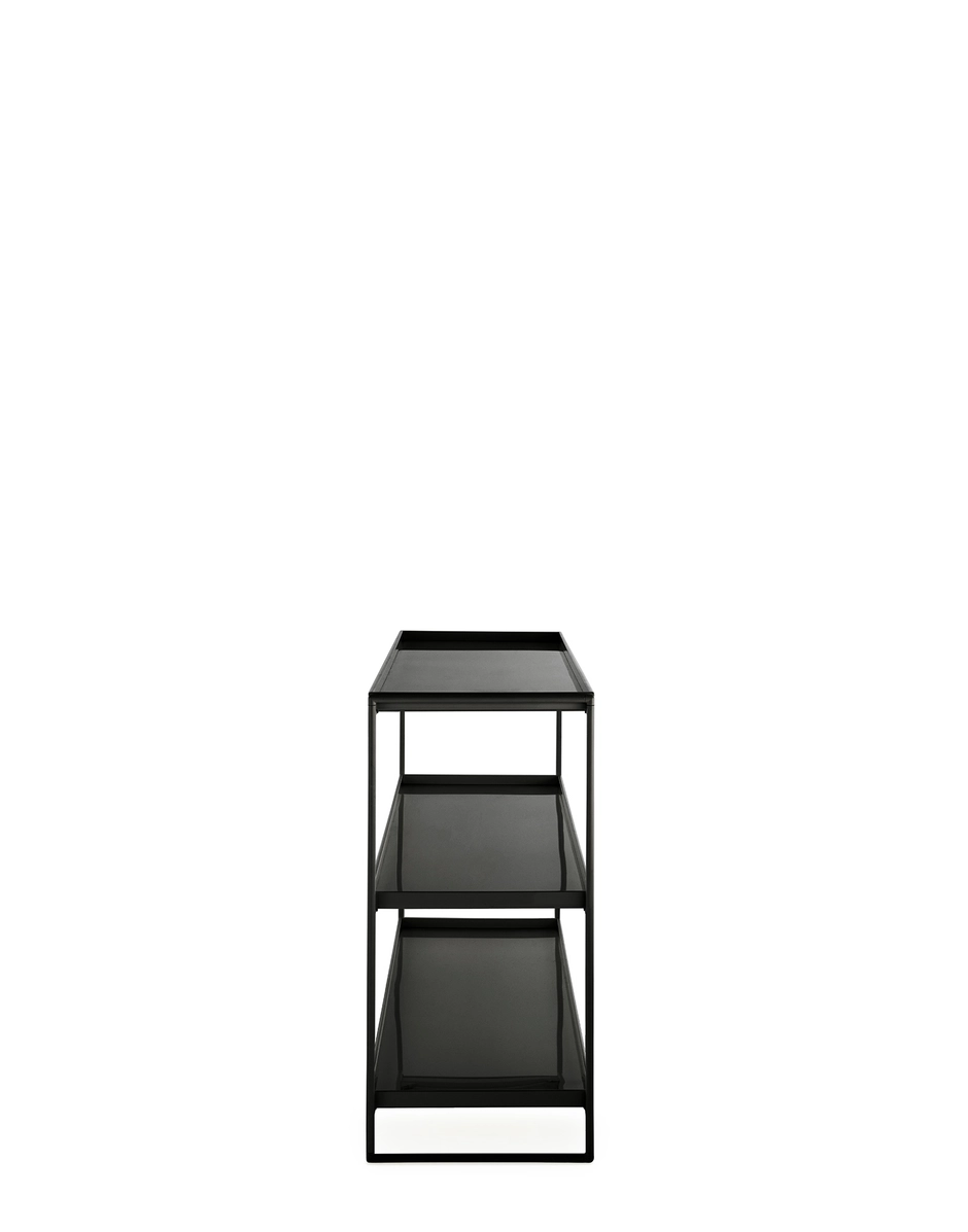 TRAYS est un système de plateaux articulés pour la maison ou le bureau. L’idée qui sous-tend ce projet est la déclinaison de petites tables, de chariots et de systèmes d’étagères dont les tablettes rappellent, par leur design et leur finition, les plateaux laqués japonais. Aujourd’hui, la collection TRAYS évolue avec de nouvelles hauteurs et formes qui répondent aux besoins modernes et à différentes fonctionnalités. Cet accessoire s’enrichit également d’une nouvelle palette de couleurs, le métal de la structure étant proposé dans des tons assortis.