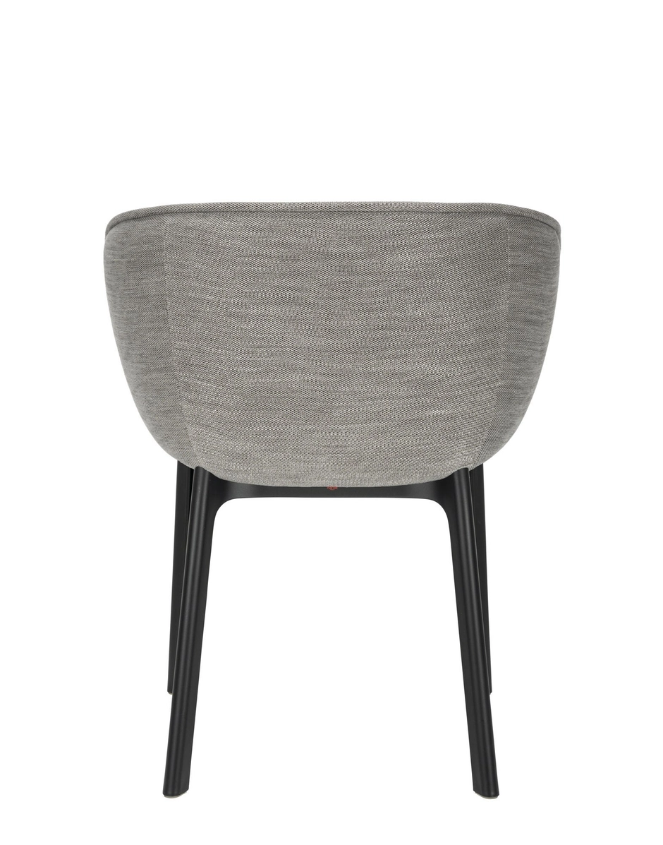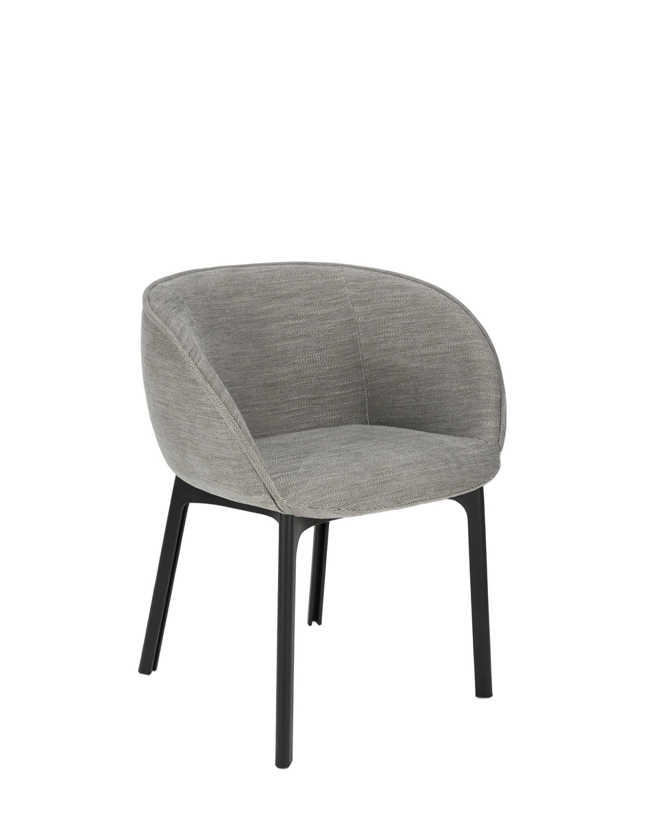 The CHARLA dining armchair boasts elegant, flowing lines and embraces you in an almost wrap-around seat. The chair has everything needed for the contract and consumer segments and is perfect for a quick rest in a hotel lobby or a TV dinner in the lounge at home. Charla combines elegance with sustainability thanks to legs made from recycled plastic. The frame comes in black, with upholstery in bouclé fabric or a special mélange fabric for the contract market