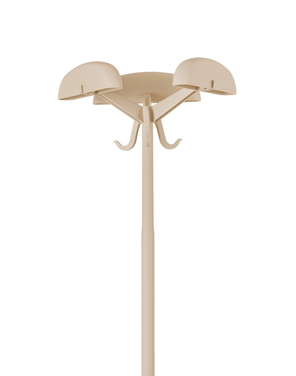 Alta Tensione is a practical and attractive coat stand that can be easily placed in any corner of the home. The aluminium structure ends in different coloured clothes hangers.
