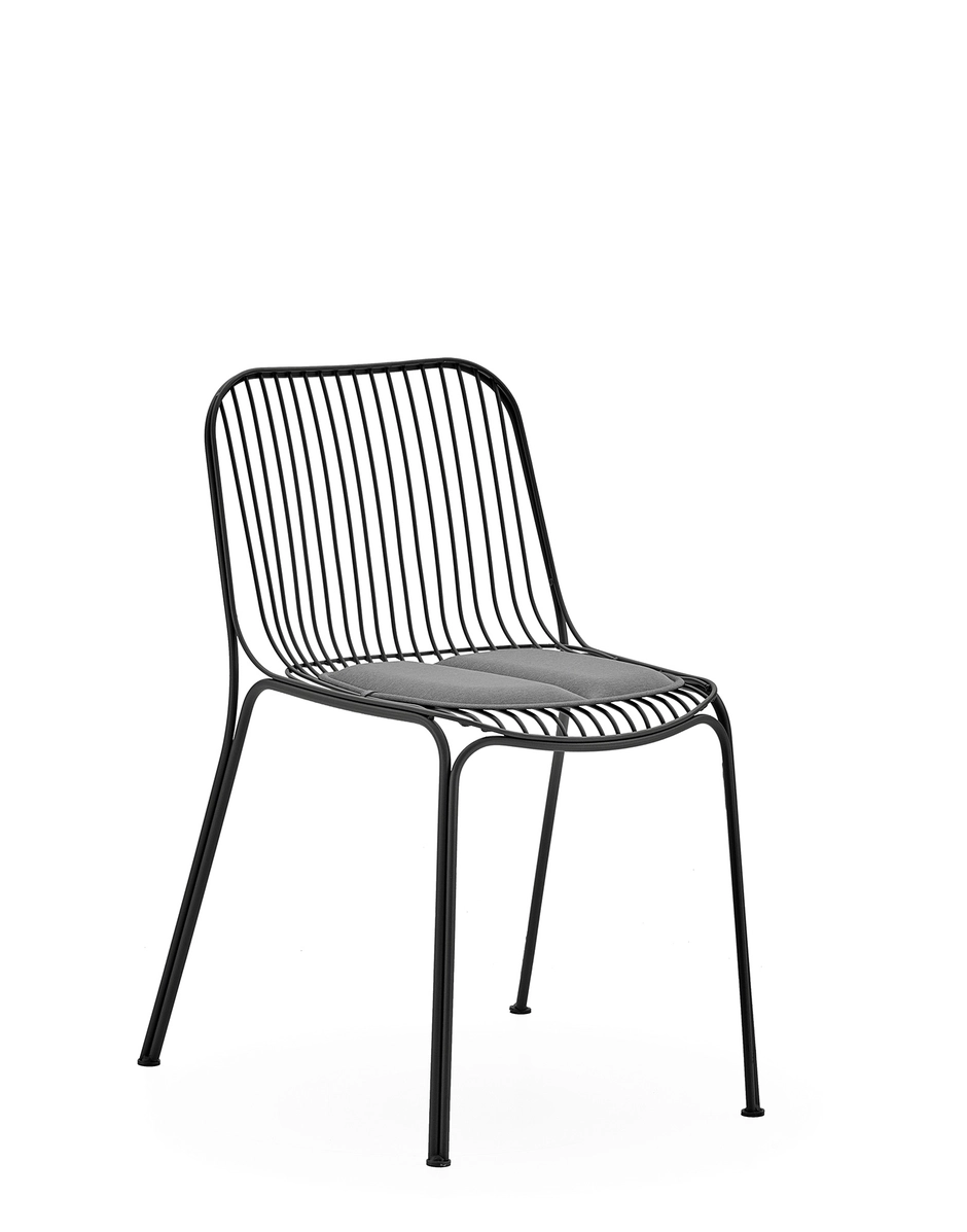 HIRAY takes metal, one of the most important materials for the greening of the Kartell catalogue, and uses the welded wire process to shape it. The result is an essential and functional product that is nevertheless rich in emotion. Metal wires form well-defined yet lightweight structural parts of the collection’s chair, chair with arms, bistro table, armchair, divan and side table. The various articles come in white, Bordeaux, black and green.