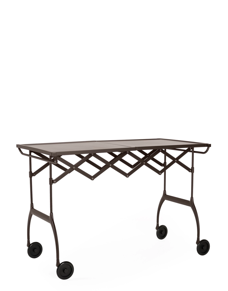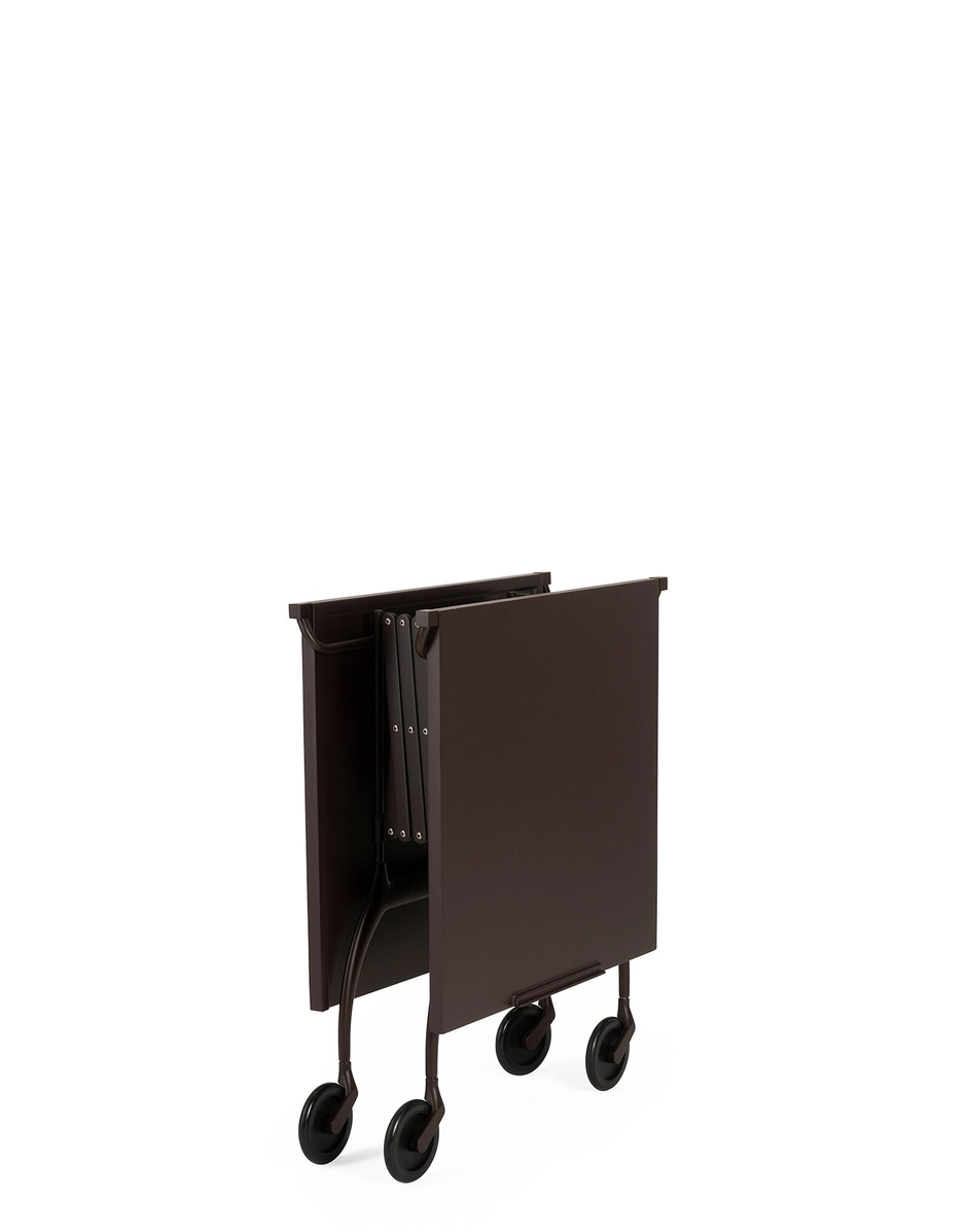 Besides being a practical trolley characterised by the successful combination of plastic and metal materials, Battista is proposed as an extensible and folding table, ideal for buffets and cocktails or for use as an occasional table.