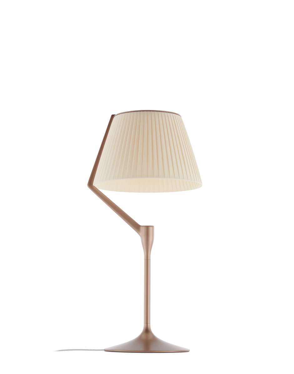 in table and floor versions, and in three finishes: champagne, copper and titanium.