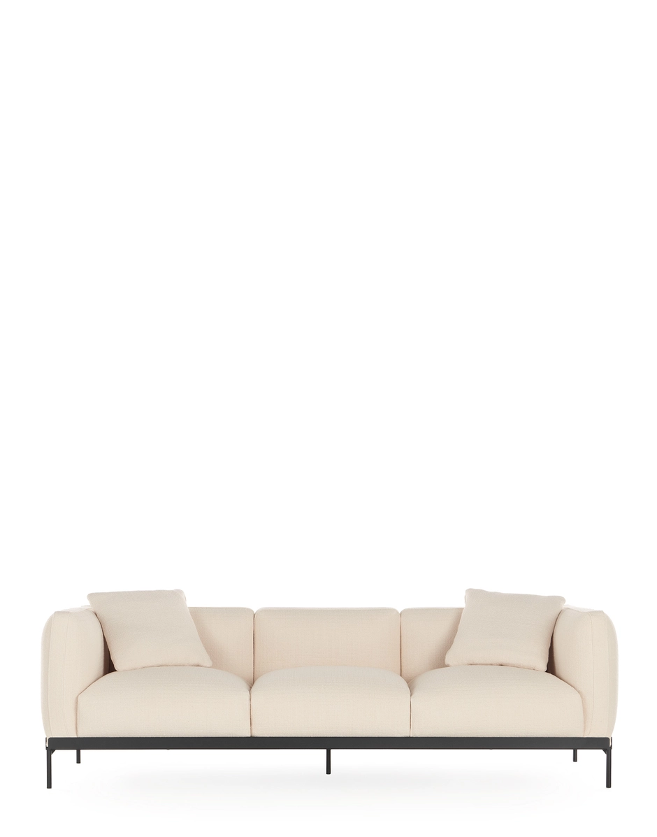 ASIA is the new sofa line designed by Piero Lissoni, featuring a compact, enveloping seat and a refined, well-balanced design. The system comprises two and three-seater sofas and an armchair. The cushions, designed for maximum comfort, are supported by an elegant metal “tray” with clean, precise lines. This element, which contrasts with the soft shapes of the cushions, creates a harmonious fusion of styles, resulting in a completely original aesthetic appeal. The ASIA line sofas are conceived to seamlessly integrate into contemporary settings, whether residential or commercial. With their versatile character and timeless elegance, these sofas bring sophistication and comfort to any living or professional space. They are available in Cotton Plain, Cotton Structure, Panamino, and Bouclé New fabrics in twenty different colours.