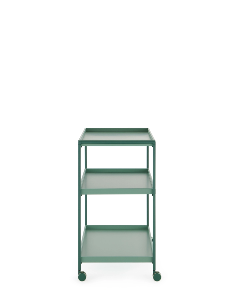 TRAYS is a versatile shelving system for home or office use. The concept is that of a set of tables, trolleys and shelves with surfaces inspired by traditional Japanese lacquered trays in both design and finish. The TRAYS collection is now bigger than ever, with new heights and shapes covering a wider range of modern needs and functionalities. TRAYS also boasts a new colour palette, with metal frames now in tone on tone shades.