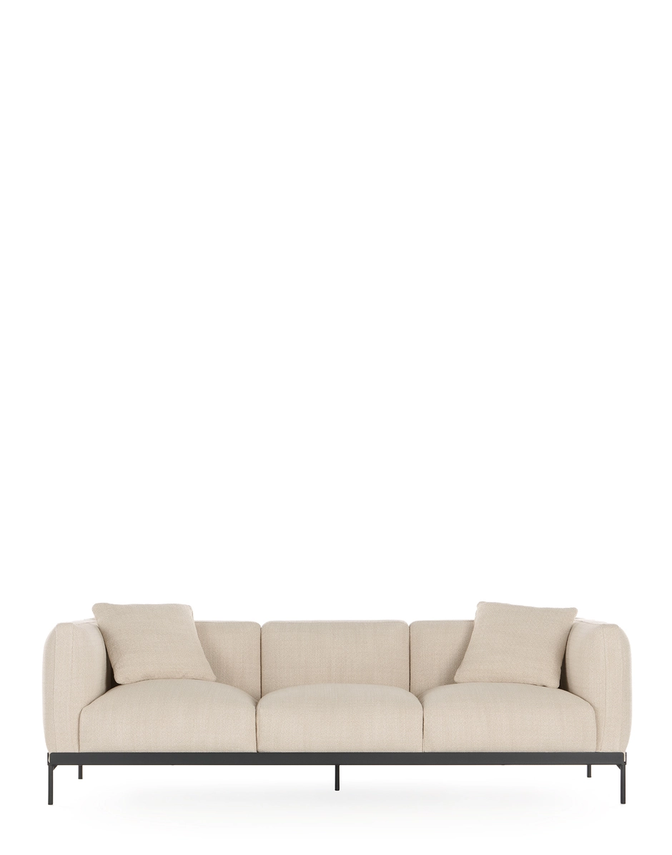 ASIA is the new sofa line designed by Piero Lissoni, featuring a compact, enveloping seat and a refined, well-balanced design. The system comprises two and three-seater sofas and an armchair. The cushions, designed for maximum comfort, are supported by an elegant metal “tray” with clean, precise lines. This element, which contrasts with the soft shapes of the cushions, creates a harmonious fusion of styles, resulting in a completely original aesthetic appeal. The ASIA line sofas are conceived to seamlessly integrate into contemporary settings, whether residential or commercial. With their versatile character and timeless elegance, these sofas bring sophistication and comfort to any living or professional space. They are available in Cotton Plain, Cotton Structure, Panamino, and Bouclé New fabrics in twenty different colours.