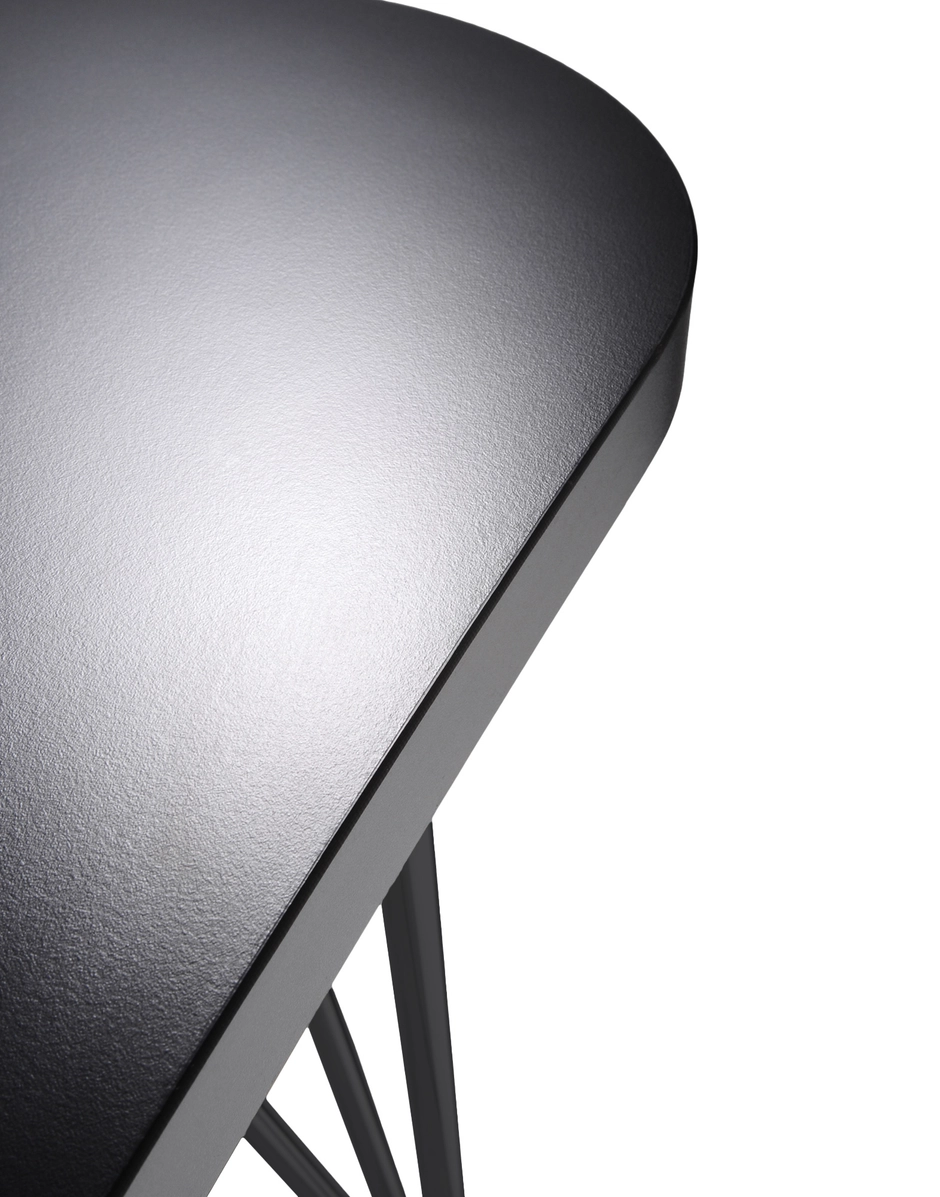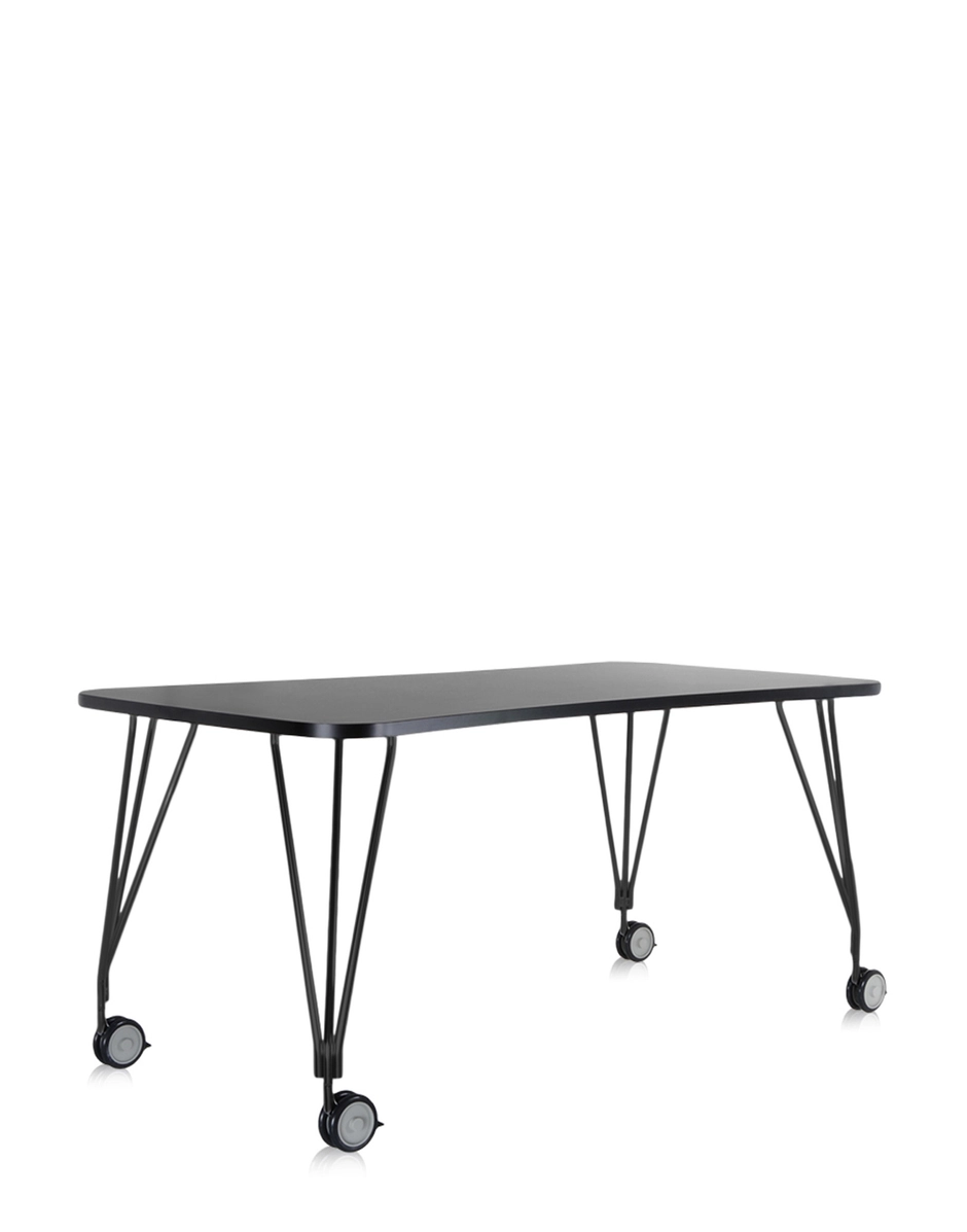 This study table was born for the office. The gentle, hourglass shape allows Max to sit side-by-side with tables of the same type as well as with other office furnishings. It can stand alone as a single workstation or together with companion pieces, creating work islands for open office spaces. The match-up combinations are easy and quick, thanks to its lightness and mobility, as demonstrated by the leg structures. Three metal tubes in chromed steel join at the base to form castors or feet. The castors are also equipped with auto-lock brakes for stability.