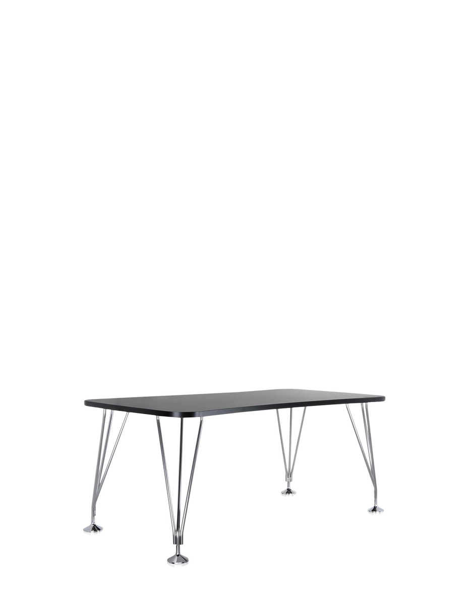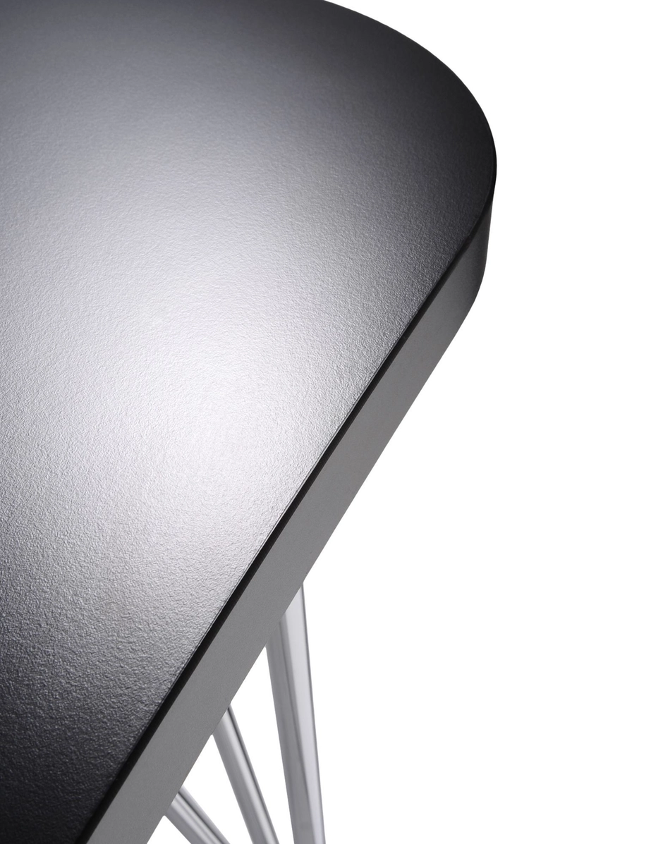 This study table was born for the office. The gentle, hourglass shape allows Max to sit side-by-side with tables of the same type as well as with other office furnishings. It can stand alone as a single workstation or together with companion pieces, creating work islands for open office spaces. The match-up combinations are easy and quick, thanks to its lightness and mobility, as demonstrated by the leg structures. Three metal tubes in chromed steel join at the base to form castors or feet. The castors are also equipped with auto-lock brakes for stability.