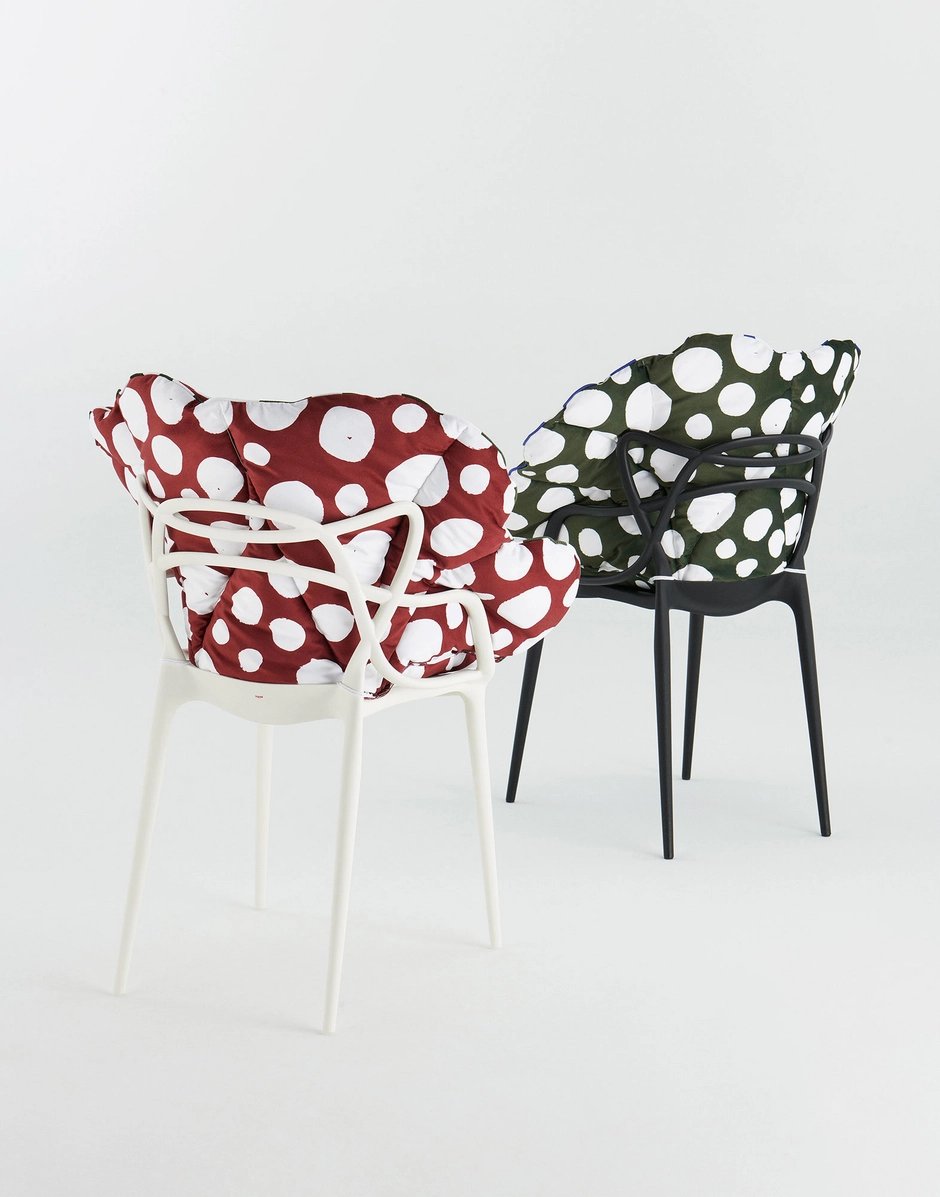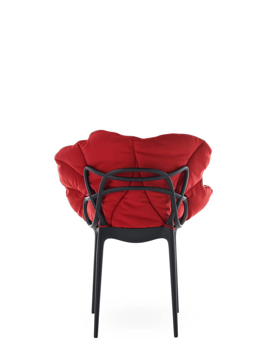 Versatile and comfortable, the Alice’s Flowers collection comes in 5 color variants: yellow, blue, pink, red, white and 2 striped and polka dot prints. The cushions are designed to transform a selection of masterpieces into padded armchairs: Masters, Louis Ghost, A.I., Venice, Hiray, Generic A and C.