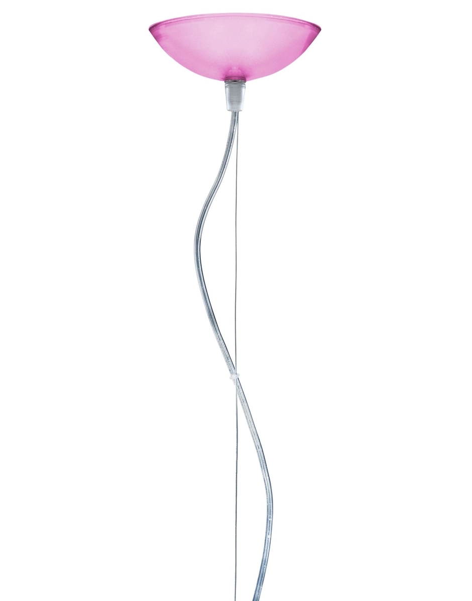 FL/Y is an essentially-styled suspension lamp. The particular transparency of the material and the sheen of the colours recreate the idea of a soap bubble, shimmering iridiscently in the light. The shade is not perfectly hemispherical, with the cut-off falling just below the level of the diameter, offering greater concentration of the light. The lamp is available in three different sizes: Fl/Y (diameter 52cm, shade depth 33cm), Small Fl/Y (diameter 38cm, shade depth 28cm) and Big Fl/Y (diameter 83cm, shade depth 55cm).
