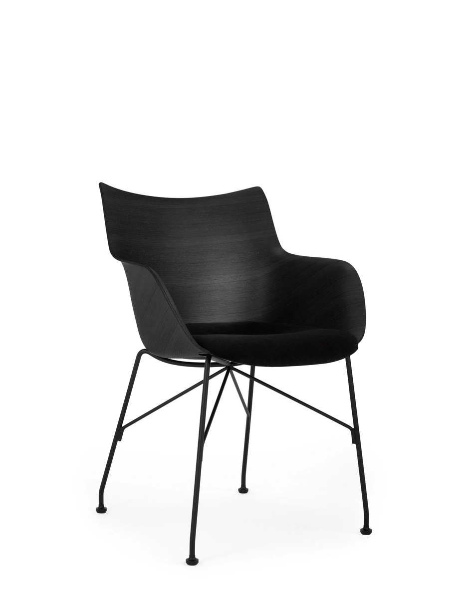 These brand-new rotating armchairs on wheels are the latest addition to the armchair collection. Q/wood is characterized by a woodworking, combining timeless elegance with contemporary forms, and is available in three colour variants: light wood with a white seat and chrome structure, dark wood with a black seat and chrome structure or dark wood with a black seat and black structure