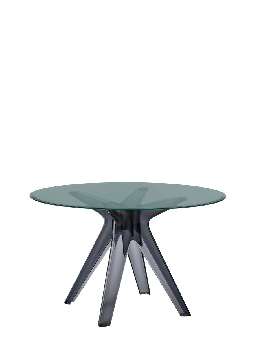 The Sir Gio table is characterised by a central leg created using a high-tech mould: the moulded plastic material conveys high performance and stability to support the glass top. The table offers the chance to combine different coloured bases and tops, for a wide range of different solutions.