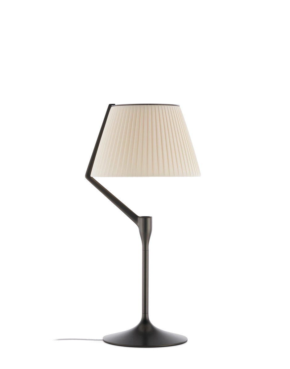 ANGELO STONE, la lámpara de Philippe Starck que revoluciona el esquema bombilla/pantalla: la fuente no está arriba, sino que es un LED colocado en el pie que ilumina la tulipa, de la que parten juegos de reflejos de lentes