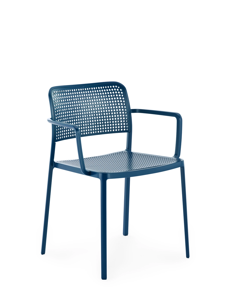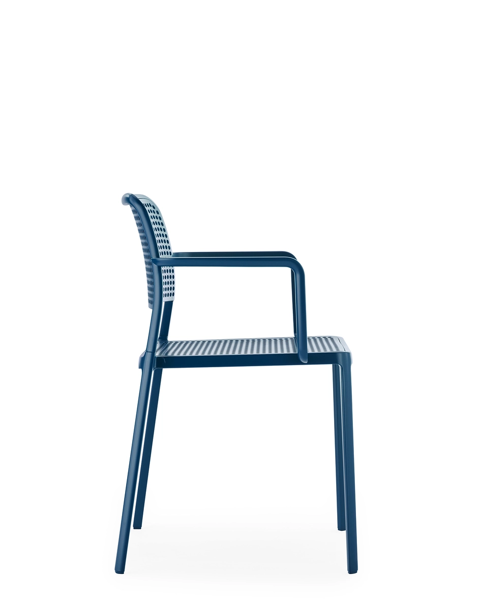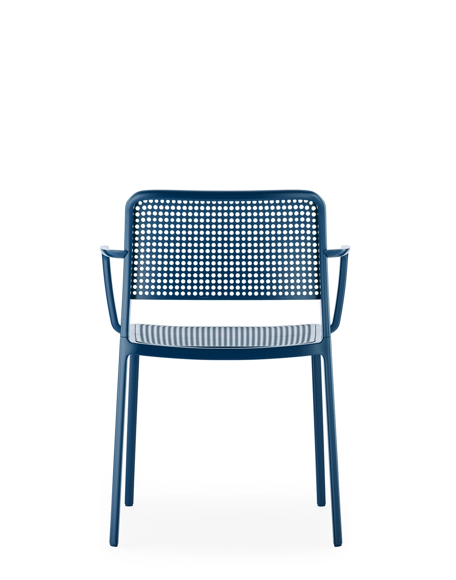 Audrey es una silla versátil y contemporánea que, gracias a la línea simple y limpia resultado de un proceso particular de presofusión en solo dos piezas, sin utilizar soldaduras, se convierte en multifuncional y se adapta a todos los usos (interior, exterior, casa, oficina y contrato) gracias a la riquísima gama de combinaciones duras y blandas. Audrey, disponible en versión silla y butaca (con brazos).