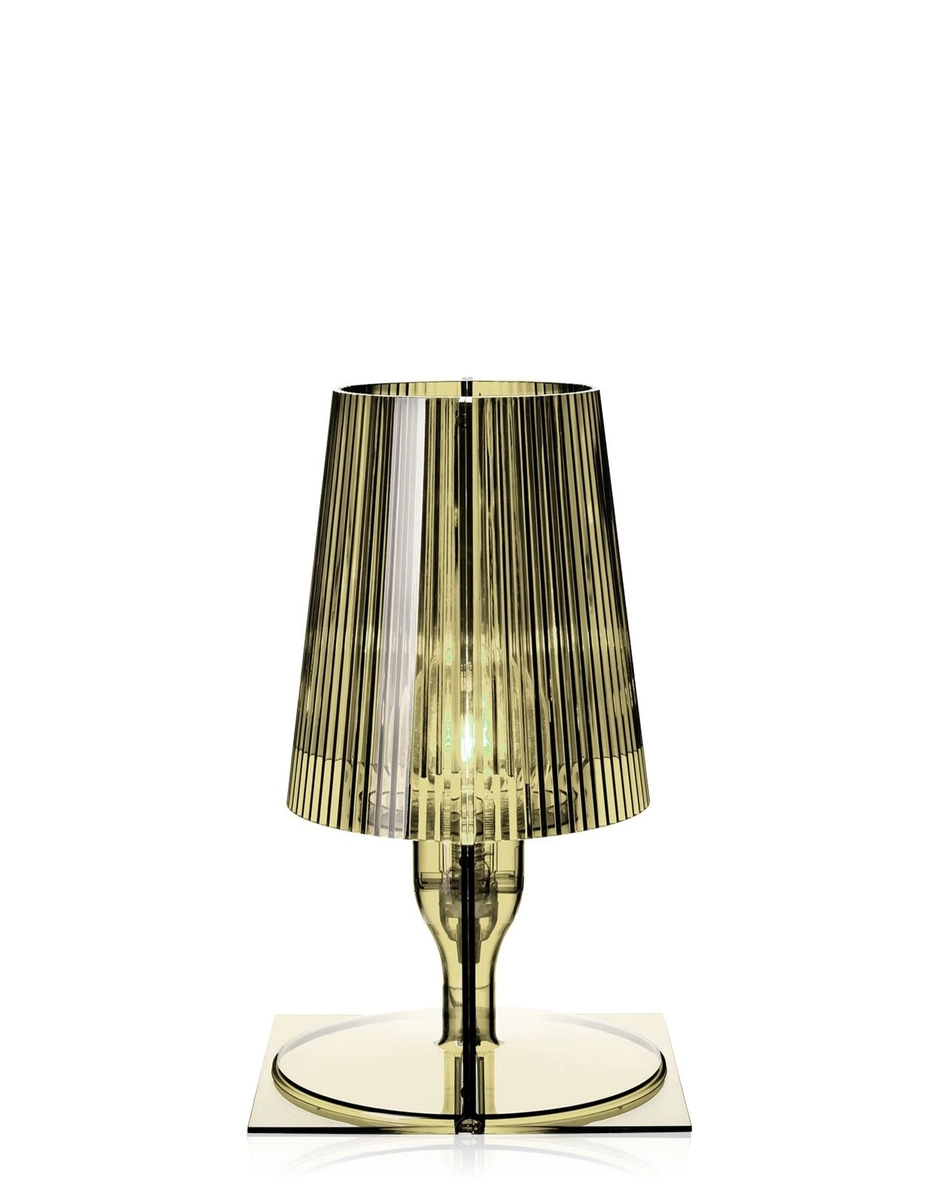 L’image classique de la lampe de chevet est revisitée par la technologie Kartell qui la transforme en un produit industriel, décliné dans différentes couleurs. La forme de Take provient de l'union de deux pièces spéculaires : deux plaques rectangulaires plates qui, en 2D au centre, prennent la forme et le volume de la « demi-lampe ». Le plissé interne du diffuseur rend cette lampe précieuse créant, une fois allumée, un jeu de reflets.