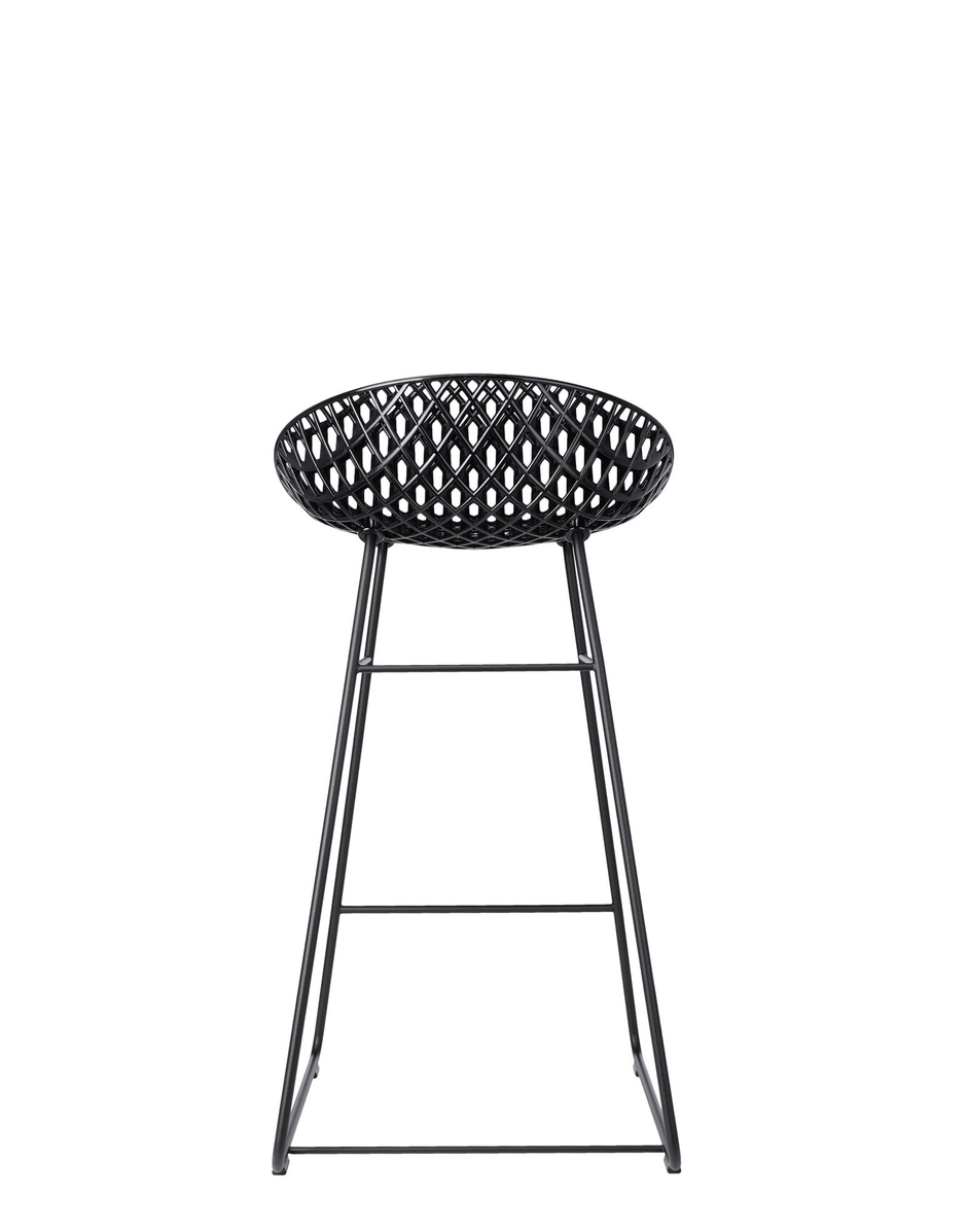 The Smatrik stool joins the family of seats created by Tokujin Yoshioka and is crafted using a mould which enables the recreation of a 3D net that overlaps and crosses over.Thanks to a special injection technology, the layers of transparent or mass-dyed polycarbonate create a structure moulded in a single piece, which simulates a metallic net, with a painted or chrome-plated structure, painted with stainless steel for the outdoor version.