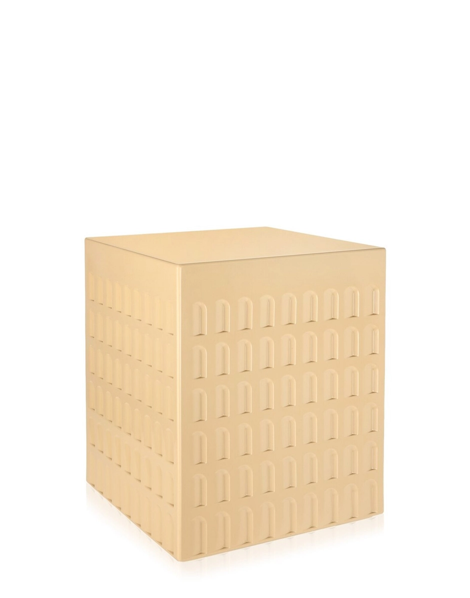 The EUR stool is a cube printed with shapes and geometries inspired, to scale, by Italian rationalist architecture of the 1930s and 40s. The stool can be multi-purposed as seat or support and fits into a variety of locations and styles.