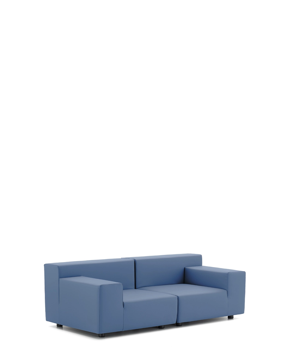Plastic is the modular sofa with severe lines characterised by large cushions made of soft polyurethane upholstered in fabric. The Pop collection is completed by an armchair with the same features and by a pouf, which can be used individually or as part of an arrangement.