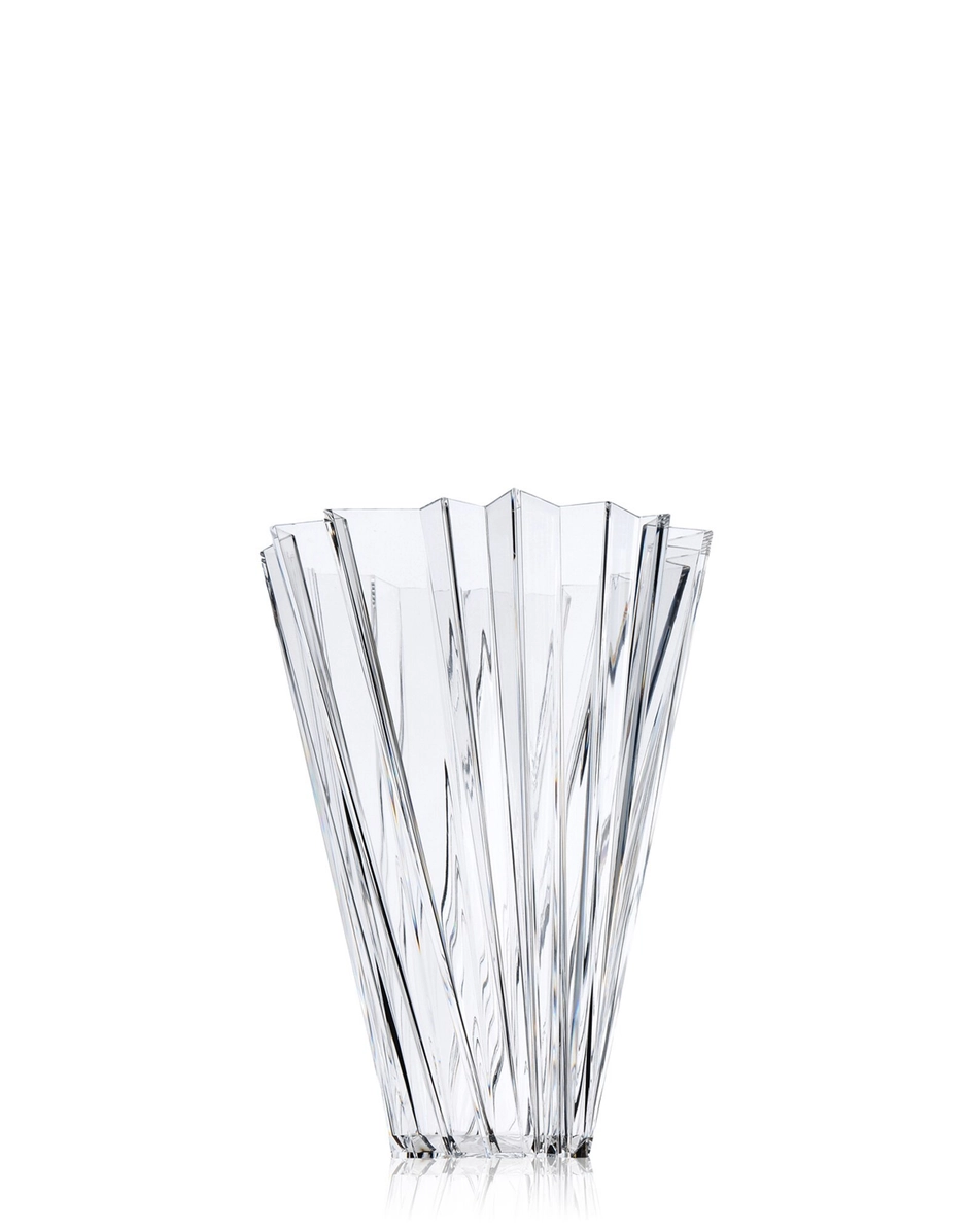 A multi-faceted vase widening from the base to the top in a swirling motion. Shanghai is like refracted light radiating from prism-like crystals with an alternating play of flashes and shadows, creating irregular geometric forms.