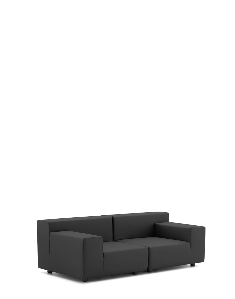 Dessiné par Piero Lissoni en 2003, le canapé Plastics est présenté dans une nouvelle version en écocuir recyclable, atoxique, écologique et résistante aux taches. Le nouveau tissu se décline en six tonalités : blanc, noir, gris tourterelle, vert sauge, poudre et brique.