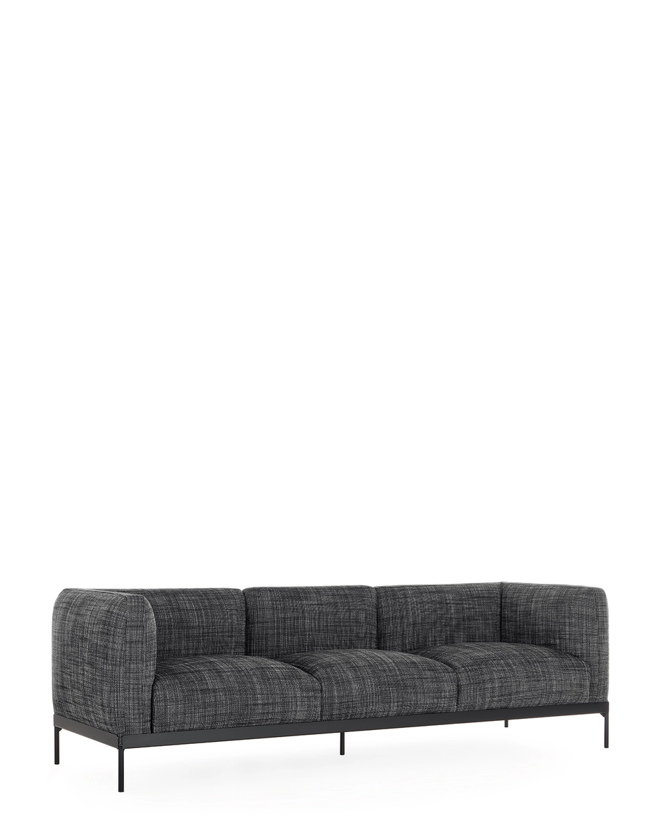 ASIA is the new sofa line designed by Piero Lissoni, featuring a compact, enveloping seat and a refined, well-balanced design. The system comprises two and three-seater sofas and an armchair. The cushions, designed for maximum comfort, are supported by an elegant metal “tray” with clean, precise lines. This element, which contrasts with the soft shapes of the cushions, creates a harmonious fusion of styles, resulting in a completely original aesthetic appeal. The ASIA line sofas are conceived to seamlessly integrate into contemporary settings, whether residential or commercial. With their versatile character and timeless elegance, these sofas bring sophistication and comfort to any living or professional space. They are available in Cotton Plain, Cotton Structure, Panamino, and Bouclé New fabrics in twenty different colours.