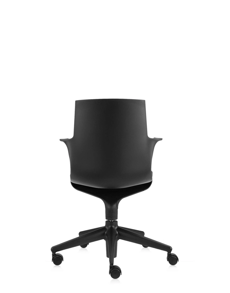 Spoon Chair is a chair designed specifically for workspaces, conceived with advanced technological features and maximum flexibility, achieved with a thickness that can easily be customised, adapting to the weight of the user. The easy-to-use handle used to adjust the mechanism is built into the lower body, completely hidden inside the stem, so as not to disturb the curve of the line.