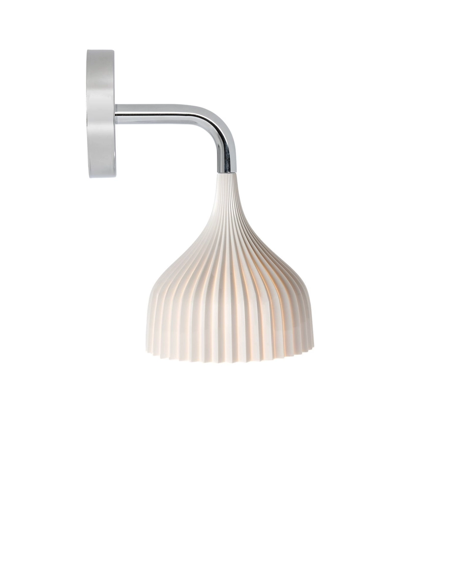 A lamp of simple and essential design, available in two versions, wall sconce and suspension lamp. The wall sconce is composed of a rosette lampshade in pleated available in several colours with an 11 cm chrome arm. The É suspension lamp consists of a pleated lampshade and a chrome rosette. The cable can be adjusted in height from 20 to 220 cm. Both versions take a 40 Watt light-bulb.
