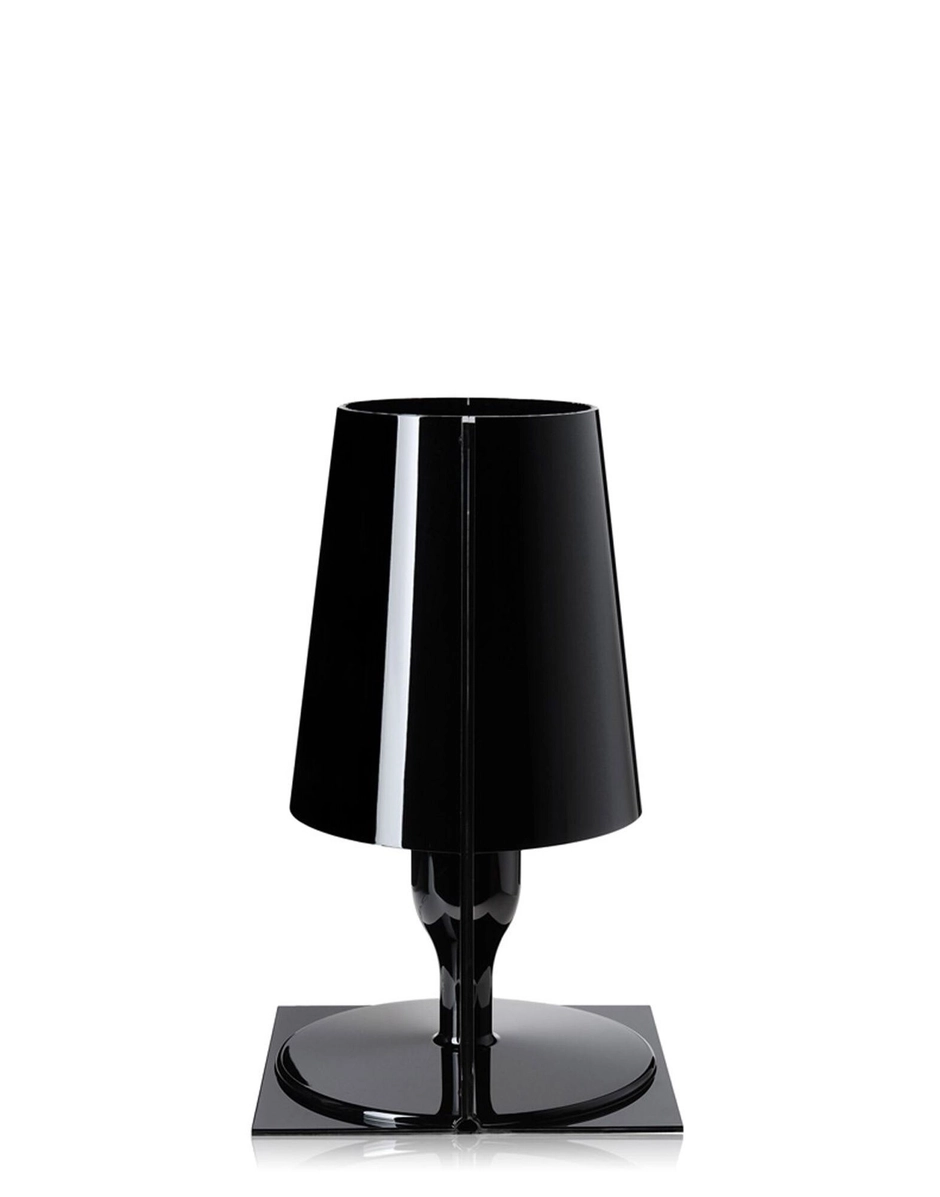 The classic icon of the bedside lamp is revisited by Kartell's technology to become an industrial product in a variety of colour shades. The shape of Take is the result of the joining of two specular parts: two flat, rectangular sheets which, from being two-dimensional at the centre, take on the shape and volume of a "semi-lamp". The internal pleating of the diffuser embellishes the object, creating, when lit, a play of reflections.