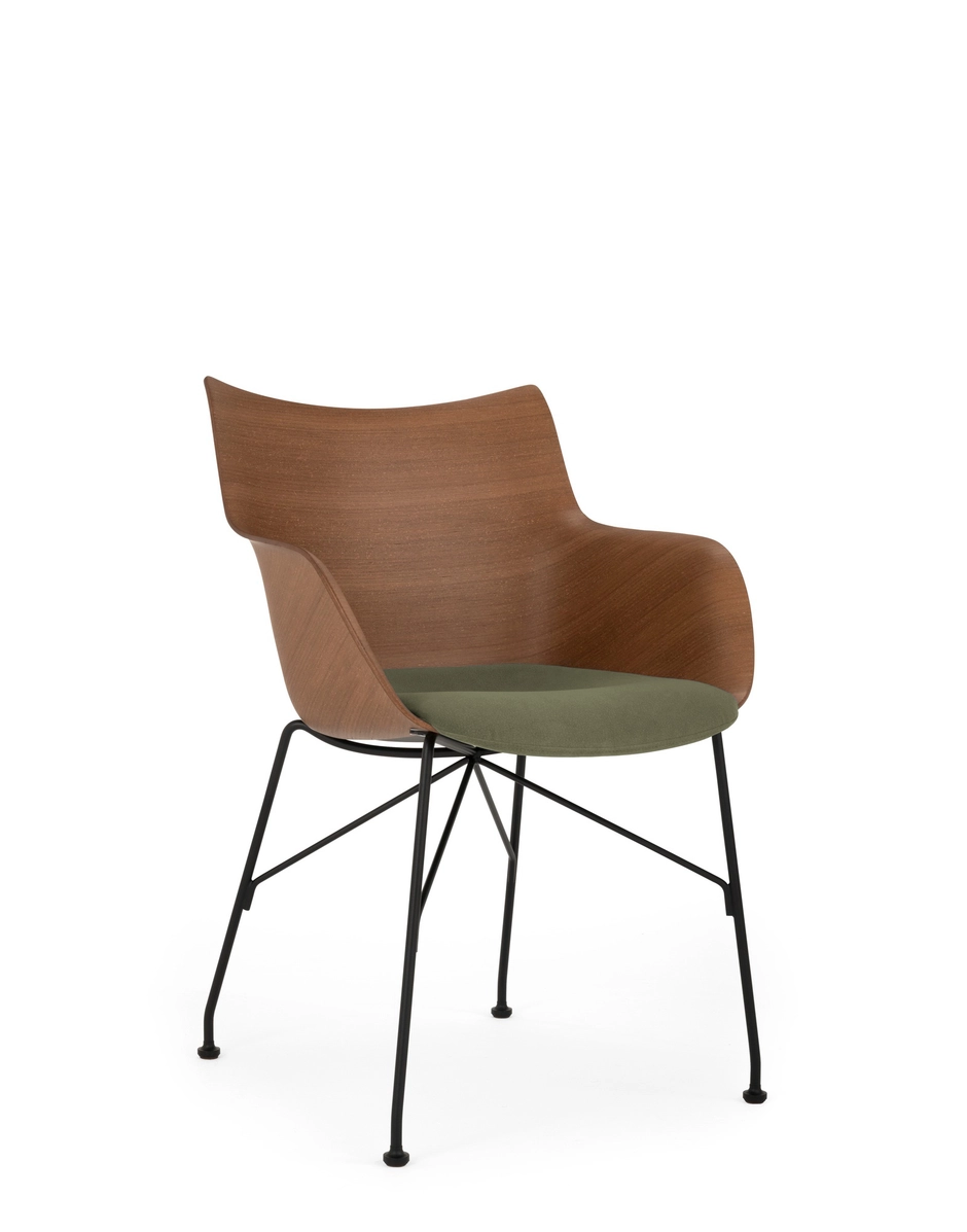 These brand-new rotating armchairs on wheels are the latest addition to the armchair collection. Q/wood is characterized by a woodworking, combining timeless elegance with contemporary forms, and is available in three colour variants: light wood with a white seat and chrome structure, dark wood with a black seat and chrome structure or dark wood with a black seat and black structure