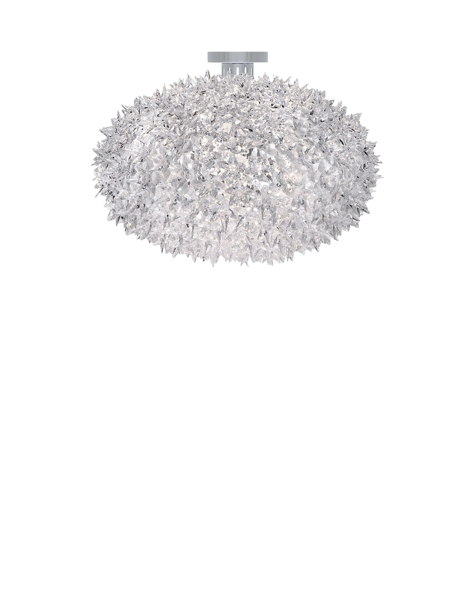 Bloom is a tubular polycarbonate framework entirely covered by a structure of tiny transparent polycarbonate double corolla flowers. The result is an industrially produced lamp but with all the forms and stylistic complexity of a unique handcrafted piece.
