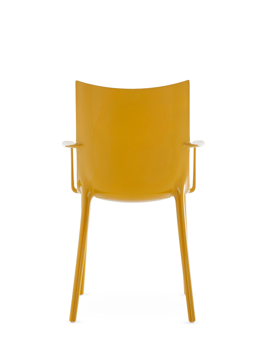 Philippe Starck elevates us to new heights with the H.H.H. - HER HIGHEST HIGHNESS chair. With unparalleled elegance and graphic impact, H.H.H. defines the very essence of the human interacting with it, compelling one to take a stance. It transcends the mere notion of sitting, transforming every moment spent upon it into one of true majesty. The frame is crafted from recycled material, and the seat is available in various finishes: recycled leather with green tanning treatment, in black and tan colours, eco-friendly texture sourced partly from recycled material and partly from renewable sources in black and tobacco colours, and in super glossy finish in white, black, burgundy, rust, mustard, blue and green.