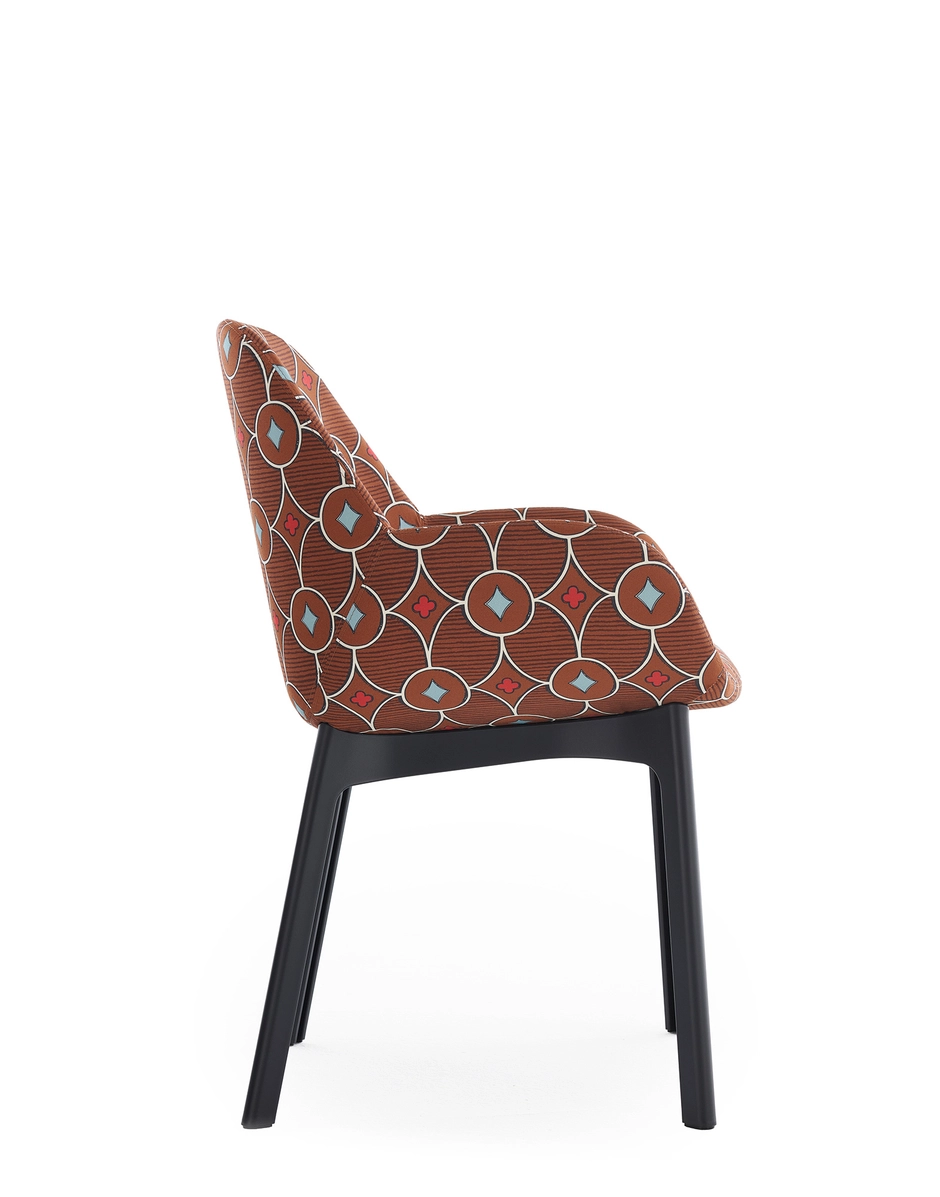 Prints with character, capable of giving new life to a product for new furnishing solutions, amplifying the possibility of personalising spaces. The Rubelli Quatrefoil® fabrics designed by Luke Edward Hall give new unexpected finishes to the CLAP thanks to the original patterns with interlocking geometric footprints, inspired by carpet designs.