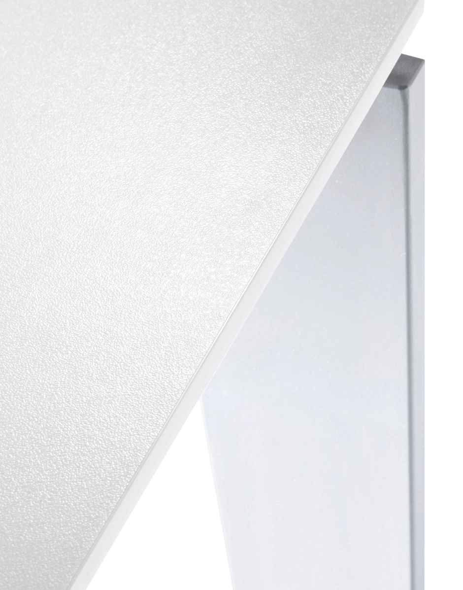 This functional and refined table also has a strict geometric design. Thanks to the elegant design solution, the position of the slim table top allows for the convenient positioning of drawers or storage furnishings for computer hardware. They can be placed side-by-side to form office workstations.